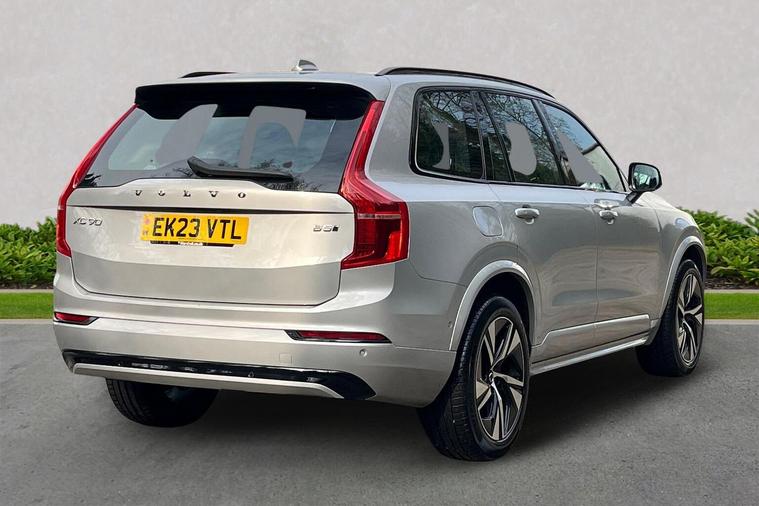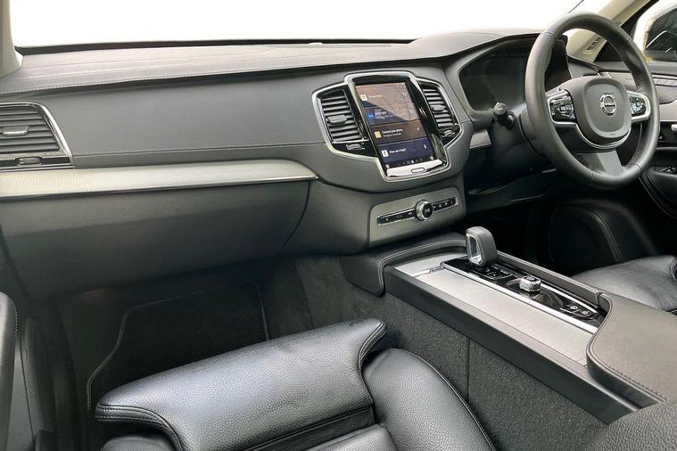 Tailored gear shift Blond headlining Metal Mesh aluminium decor Leather upholstery Leather-free steering wheel with Uni-deco trim. Charcoal Comfort Front Seats 8-speed Automatic transmission. AWD Pedals Third row air conditioning 4-Zone Electronic Climate Control Afterrun parking climate Passenger Airbag Cut Off Switch Dual Stage Driver and Passenger Airbags Driver Knee Airbag Panoramic roof Road Sign Information Driver Alert Control with Lane Keeping Aid Front grille with high-gloss black insert Heated grill emblem Full-LED headlights Headlight Cleaning System Rear fog lights switched off when trailer fog lights are running Front LED Foglights 12-inch driver display Google Assistant. Google Maps and Google Play Store – included for 4 years Pilot Assist (up to 80mph) Adaptive Cruise Control with Distance Alert & Queue Assist Pilot Assist Adjustable Speed Limiter Volvo Cars App remote functions - included for 4 years Fresh Air Subwoofer DAB (Digital Audio Broadcasting) Radio Premium Sound by Harman Kardon Autofolding Heated Power Door Mirrors Power operated passenger seat with memory function Wireless/Inductive Mobile Phone Charging Automatic door locking Remote key Door mirror covers. Black Stone Double locking BLIS™ and Cross Traffic Alert Anti-theft Alarm including Immobiliser. Volume Sensor and Level Sensor Power Child Locks Power tailgate Keyless Drive (includes Keyless Entry and Keyless Start) CleanZone with air purifier Digital owners manual Textile mats. third-row Tailored dashboard and door top panels Power Driver's Seat with Memory Power Passenger Seat Heated front seats Heated Rear Seats - Outer Positions Power folding outer rear head restraints. second row 7 seats Mechanical release second seat row 4-Way Lumbar Support Exclusive textile mats. Charcoal Load Protection Net Flexible Load Floor with Grocery Bag Holder Rear centre armrest Illuminated Vanity Mirrors Rear Footwell and Side Step Illumination 12v Socket - Cargo Area Load cover. semi-automatic Integrated Sun Curtain - Rear Doors Automatically dimmed inner and outer rear view mirrors Hidden storage compartment Power cushion extension. driver Chassis Hill Start Assist Indirect Tyre Pressure Monitoring System (iTPMS) Oncoming Lane Mitigation Rear Collision Warning and Mitigation Support Hill Descent Control Slippery road alert EBL. Flashing Brake Light and Hazard Warning Heated Steering Wheel Adaptive power steering 20? 5-Spoke Black Diamond Cut Temporary spare wheel Locking Wheel Nuts Heated Front Windscreen Washer Nozzles Body-coloured door handles with ground lighting Glossy black front decor elements Cargo opening metal scuff plate Illuminated Front Tread Plates Glossy Black Window Trim Roof Rails - Integrated. High G