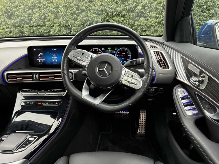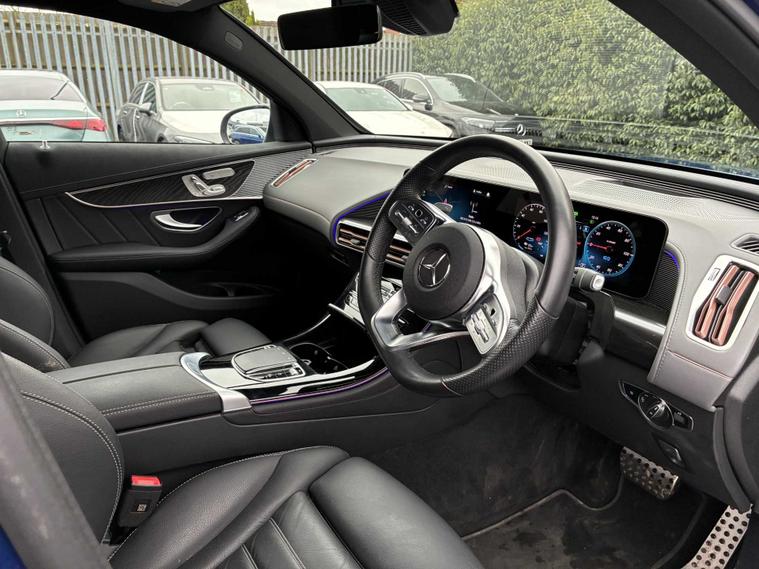 This Mercedes-Benz EQC 400 AMG Line Premium Plus combines fully electric performance with exceptional comfort and unmistakable Mercedes-Benz refinement. Powered by an 80?kWh battery and dual-motor 4MATIC system producing 408?ps, the EQC delivers instant acceleration, quiet and seamless power delivery, and the confidence of all-wheel drive in all conditions. Its refined chassis and smooth electric drivetrain create an effortless driving experience, whether navigating urban roads or cruising long distances. The AMG Line styling gives the EQC a bold, sporty and contemporary look, with distinctive LED lighting signatures, sleek body lines and premium AMG-inspired detailing. As a Premium Plus model, this EQC is equipped with an outstanding specification. Features such as the panoramic sunroof, Burmester surround sound system, upgraded digital displays, electrically adjustable memory seats, ambient lighting and advanced driver-assistance technology all contribute to a truly luxurious and modern cabin environment. The MBUX infotainment system with voice control and widescreen cockpit provides intuitive, high-tech functionality throughout the interior. With its spacious layout, impressive refinement and high-quality finish, the EQC 400 offers all the practicality of a premium SUV with the added benefits of fully-electric efficiency. Quiet, comfortable and beautifully engineered, this EQC AMG Line Premium Plus represents an excellent opportunity to own a sophisticated electric SUV with superb performance and top-tier equipment. Please call Mercedes-Benz of Stoke directly on 01782492848 to reserve this vehicle or request a personalised walk-round video.