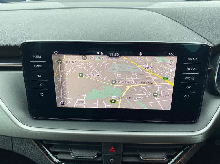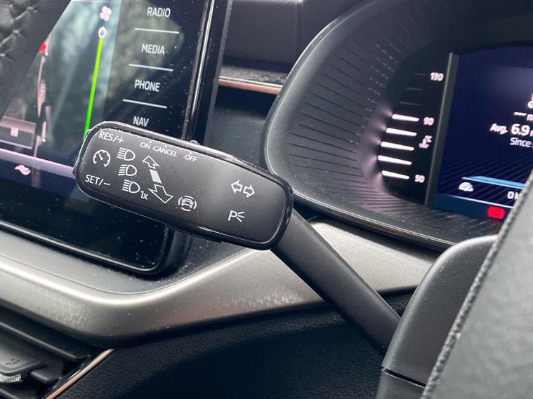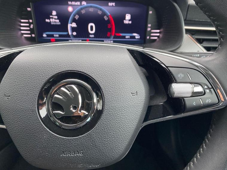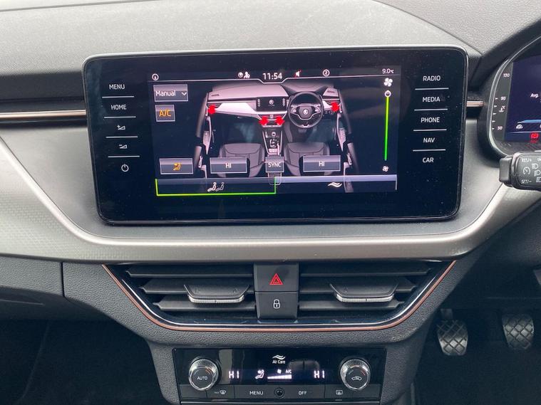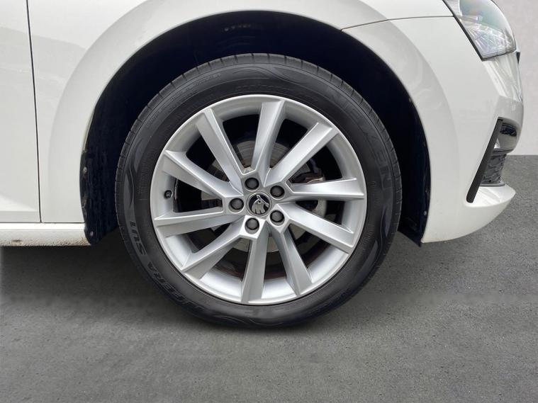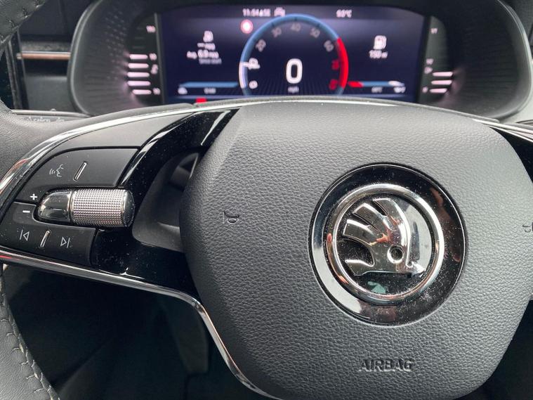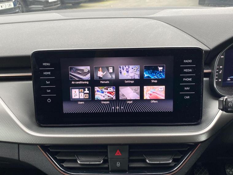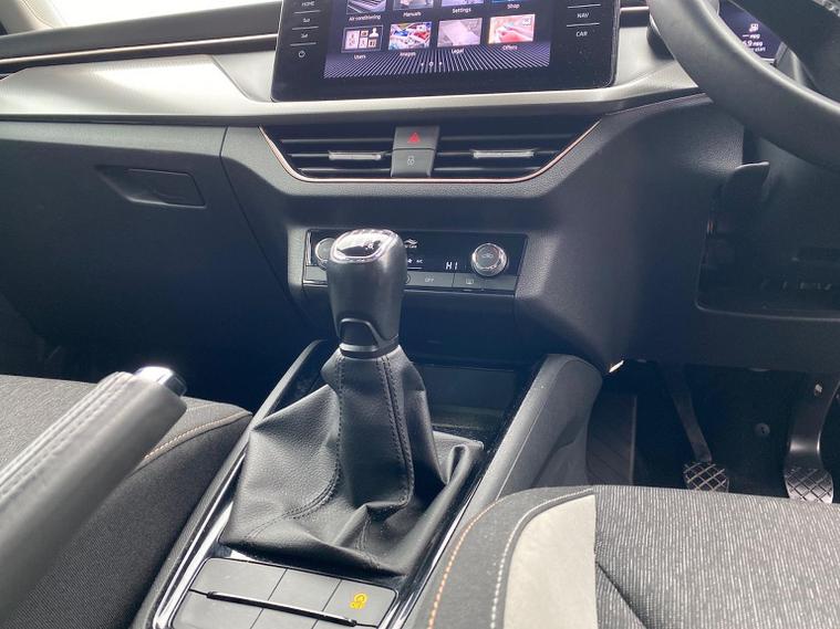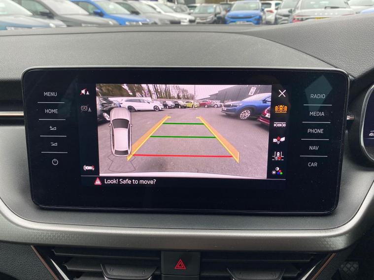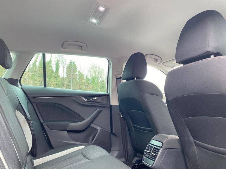 Skoda Scala SE L 1.0 TSI 110 PS manual in Candy White with black and grey interior includes Amundsen satellite navigation with 9.2 inch touchscreen virtual cockpit Bolero 8 inch display DAB radio Bluetooth SmartLink wireless SmartLink Care Connect Infotainment Online two USB C ports emergency call and proactive services and eight speakers. Standard specification includes cruise control rear parking sensors rear view camera 17 inch Stratos alloy wheels electrically adjustable heated and folding door mirrors body coloured trim chrome grille privacy glass tinted windows temporary steel space saver spare wheel automatic headlight control LED headlights LED daytime running lights LED rear lights and front fog lights with corner function. Inside it offers dual zone climate control ambient lighting white grained black decorative inserts chrome detailing height adjustable front seats manual lumbar support leather gear and handbrake trim two spoke leather multifunction steering wheel front centre armrest overhead glasses storage rear centre armrest virtual cockpit reading lights umbrella and textile floor mats. Safety features include ABS front side head and curtain airbags passenger airbag switch off function front assist lane assist hill hold control ISOFIX on rear seats alarm with SAFE locking remote central locking seatbelt reminders and keyless entry and start. We offer personal video appointments test drives and can arrange finance.