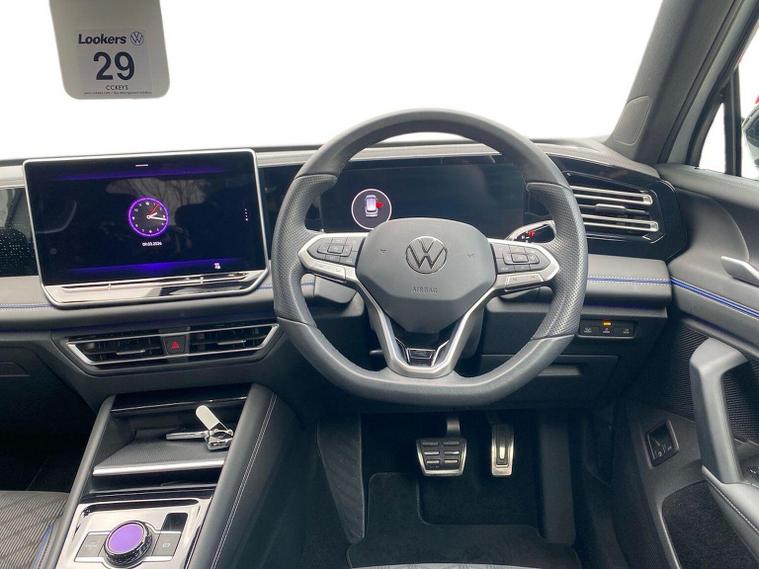 Finished in Pure White with the sought-after Black Styling Pack and 20" York Black alloy wheels. This example combines strong visual presence with an extensive list of comfort, safety and technology features, making it an ideal choice for buyers seeking a premium, well-equipped vehicle. Key Features Pure White solid paint Soul/Black interior colour scheme 20" York Black alloy wheels with AirStop tyres Black Styling Pack with tinted laminated rear glass, black roof rails, black mirror housings and R-Line style bumpers Comfort Package with SAFELOCK, including Keyless Entry, electric tailgate with virtual pedal, alarm system and Park Assist Plus with memory Infotainment Package with navigation, IDA voice assistant, wireless charging and four USB-C ports (up to 45W) Winter Pack with heated front seats, heated steering wheel and heated washer jets Safety and Driver Assistance This car is equipped with Volkswagen’s full suite of advanced safety systems, including: Adaptive Cruise Control Front Assist with pedestrian and cyclist monitoring Lane Assist and Side Assist with Rear Traffic Alert Dynamic road sign display Rear view camera Oncoming vehicle braking with swerve support ISOFIX front and rear Predictive speed limiter Front Cross Traffic Assist Condition and Ownership The specification includes factory transport protection and all equipment listed is original. The car presents exceptionally well, with the Black Styling Pack and 20" wheels giving it a strong, modern appearance. Interior condition matches the exterior, with the Soul/Black trim providing a clean and contemporary feel.