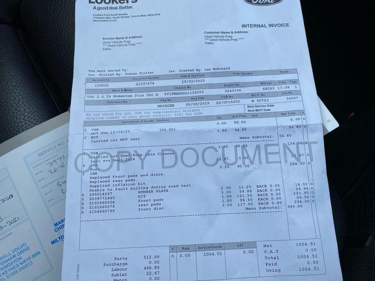 Service History – 5 Service Stamps + Our Preparation | Momentum Plus Trim | 190PS T4 Petrol Engine | Automatic Gearbox | Black Leather Interior | Heated Electric Front Seats | Rear Parking Camera | Front & Rear Parking Sensors | Satellite Navigation | LED Headlights | Alloy Wheels | Premium Volvo Comfort & Refinement This 2019 Volvo V90 2.0 T4 Momentum Plus delivers outstanding comfort, premium Scandinavian design and superb practicality in one of the most refined estate cars available. With its sleek profile, spacious layout and high-quality finish, it’s ideal for families, commuting and long-distance driving. This example features service history, supported by 5 stamped services plus our preparation, showing excellent long-term care. Powered by the smooth and efficient 190PS T4 petrol engine, the V90 offers refined performance with excellent cruising ability. The automatic transmission shifts seamlessly, making every journey relaxed and effortless. Inside, the Momentum Plus cabin enhances luxury with black leather upholstery, heated electric front seats, and a clean, modern dashboard layout. The large touchscreen infotainment system includes satellite navigation, media controls and connectivity features. For added convenience, the car comes with a rear parking camera and front and rear sensors, making manoeuvring simple and safe. Externally, LED headlights, stylish alloy wheels and the V90’s elegant silhouette give the car a premium, timeless appearance. The large estate boot provides exceptional practicality, ideal for family life, work equipment or long-distance travel. Comfortable, refined and exceptionally well equipped, this V90 Momentum Plus represents excellent value for anyone seeking a premium estate with strong performance, great comfort and a proven service record. Enquire today to arrange a viewing or test drive. Finance options available. Supplied with a comprehensive 3 month RAC warranty with breakdown assistance which can be extended to up to 4 years, fully inspected through our workshops with a service and new MOT if required, an HPI gold check, professional valet and with no admin fees to pay. We can organise nationwide delivery or you can use our click and collect facility which is an online deposit of £250 and collect from our showroom here in South Shields, Newcastle Upon Tyne, just off the A19! Please call now for more information and a personalised video showing you your next car! 01913252013 "Unless otherwise stated, vehicles may have previously been used for business or hire purposes and so may have had multiple users. Where we hold documents relating to vehicle history, these are available for inspection on request.”