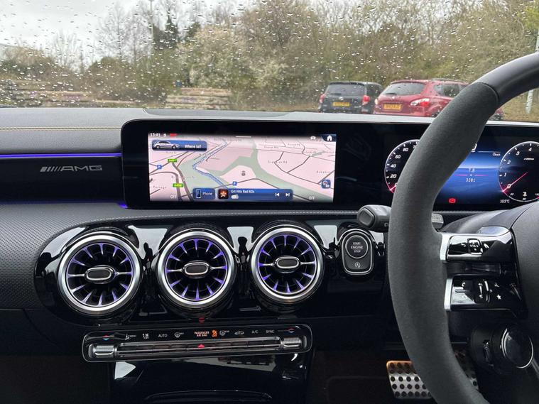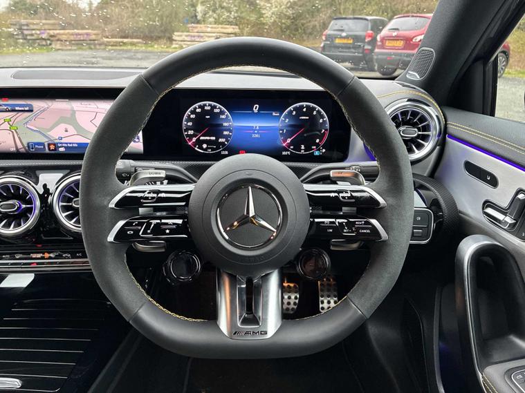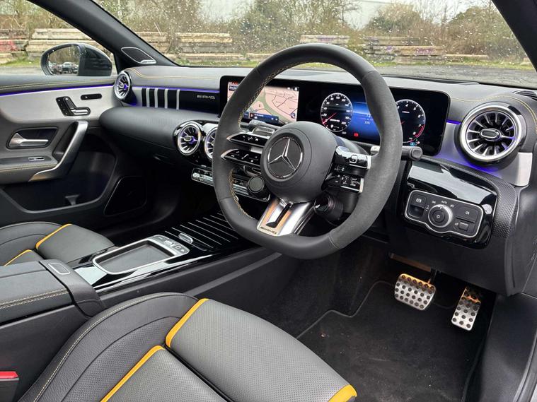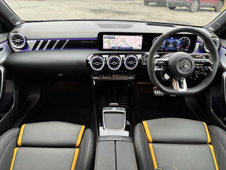 This 2025 Mercedes Benz A Class A45 AMG S Plus is a truly exceptional find, boasting an incredibly low mileage of just 1001 miles, making it practically new. As a single owner vehicle, it has been meticulously cared for. This premium hatchback is powered by a potent 2.0 litre petrol engine, delivering exhilarating performance through its four wheel drive system, all while adhering to the Euro 6 emission class.