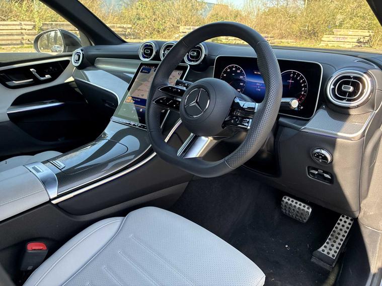 This 2025 Mercedes Benz GLC300e AMG Line presents a superb ownership proposition, having had only one owner since new. This impressive plug in hybrid SUV boasts a powerful 2.0 litre petrol engine combined with electric power, delivering an efficient and dynamic driving experience. Its Euro 6 emission class ensures compliance with current environmental standards, while the sophisticated AMG Line trim enhances its sporty appeal.