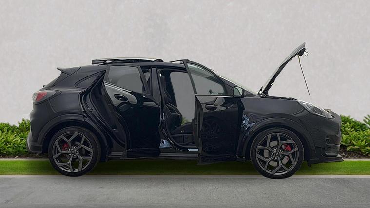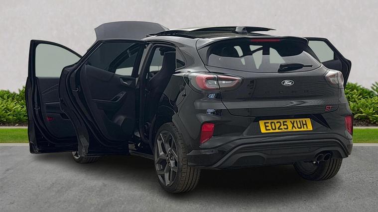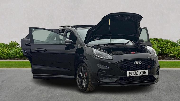 FORD PUMA 1.0T 170ps MHEV ST DCT | Panoramic Sunroof | Camera | Winter Pack Mileage: 10, 417 | Ford Direct Premium Approved | Registration: EO25XUH | Introducing this superb Ford Puma ST 170PS Automatic, supplied as a Ford Direct Approved vehicle for total peace of mind. This is the range topping 170PS MHEV ST version paired with the desirable DCT automatic gearbox, offering sharp performance, instant response and everyday drivability. Finished in Agate Black metallic and loaded with premium factory extras including the Panorama Roof, Premium Synthetic Leather / Suede Interior, and Red ST Stitching, this is an exceptionally desirable and rare specification. With just 10, 417 miles, this example presents beautifully throughout. Key Features & Factory Options • Panorama Roof – Power Opening • ST Body Styling With Sport Suspension • LED Headlights • 18" ST Alloy Wheels • Privacy Glass • Premium Synthetic Leather With Synthetic Suede Inserts • Red ST Stitching – Black Interior Theme • Recaro Style Ford Performance Seats • Heated Front Seats • Heated Steering Wheel • Dual Zone Climate Control • DCT Automatic Gearbox (7 Speed) • SYNC 3 Touchscreen With Apple CarPlay / Android Auto • 12.3" Digital Instrument Cluster • B&O Premium Audio System • Front & Rear Parking Sensors + Camera • Keyless Entry & Start • 1.0 EcoBoost MHEV 170PS Engine – ST Tuned • Selectable Drive Modes (Normal / Sport / Track) • Enhanced Braking & Suspension Setup • Lane Keeping Aid & Pre Collision Assist Why Buy This Puma ST? • Ford Direct Approved – the highest level of Ford’s used car assurance • Rare 170PS DCT ST model with premium options • Panorama Roof adds huge desirability • Stunning Agate Black finish with upgraded interior • Low mileage and excellent condition throughout