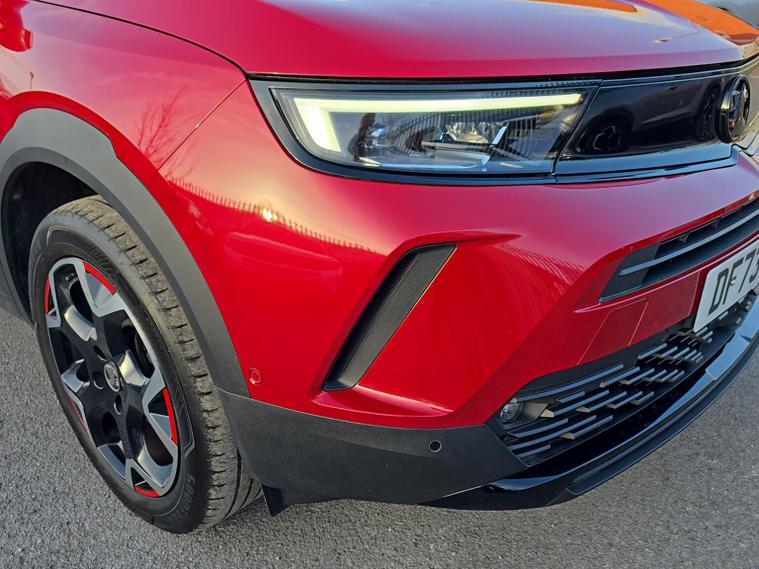 This 2023 Vauxhall Mokka Turbo Ultimate is a superb example of modern motoring, boasting a Euro 6 compliant 1.2 litre petrol engine. As a Turbo Ultimate model, it comes with the top trim level, offering a refined driving experience. This Mokka is equipped with a suite of advanced features designed for convenience and safety, including a panoramic rear view camera with parking assistance, heated front seats for those colder mornings, and automatic lighting control with tunnel detection. Navigating tight spaces is made easier with front and rear parking distance sensors, while the side blind spot alert and flank guard provide an extra layer of awareness on the road. Experience impressive efficiency with a highlight fuel economy of 48 miles per gallon, alongside low CO2 emissions, making this Mokka a sensible choice. Its performance is equally noteworthy, achieving 0 to 60 miles per hour in just 9.2 seconds. These highlights demonstrate how this Vauxhall Mokka Turbo Ultimate offers a compelling blend of economy, performance, and advanced technology, setting it apart from other vehicles in its class.
