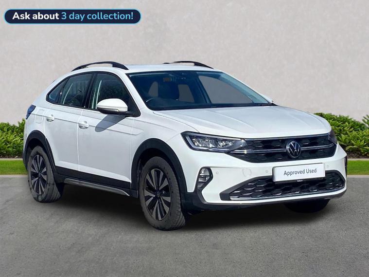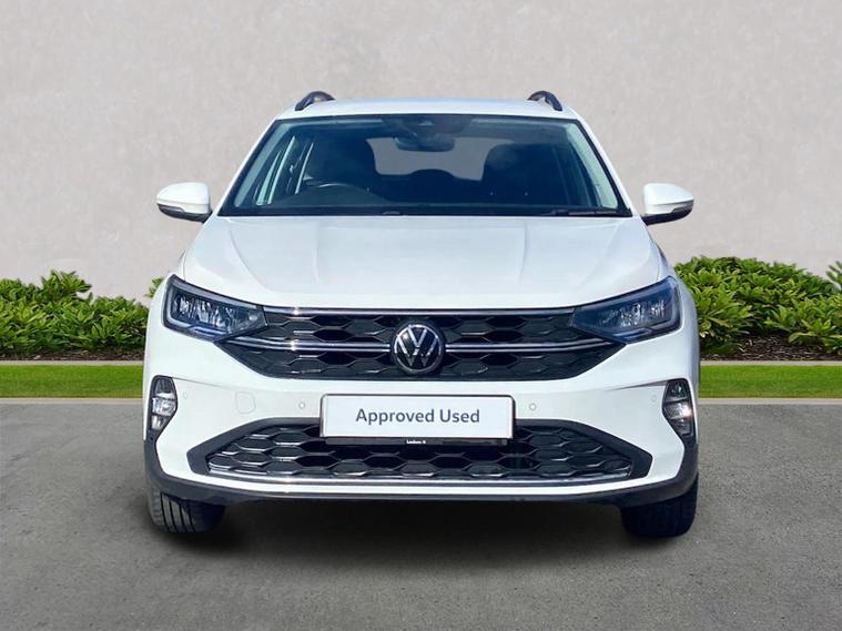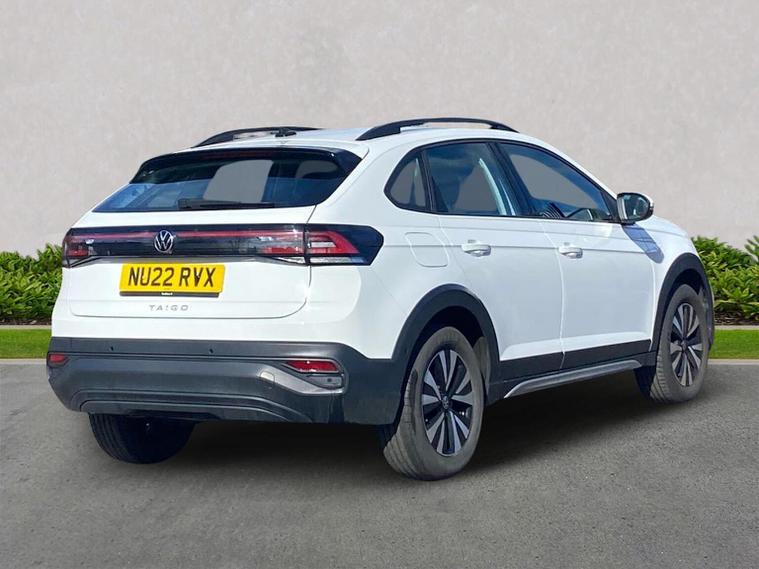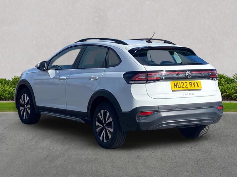 Finished in Pure White with a clean Titanium Black interior, this Taigo Life 1.0 TSI 95PS 5-speed manual offers efficient performance, stylish design and a strong list of modern features. Its turbocharged 1.0-litre engine provides smooth, economical driving, making it ideal for both city use and longer journeys. The exterior is enhanced by 16" Everett alloy wheels in Black with a diamond-turned finish, fitted with low-rolling-resistance tyres and protected by anti-theft wheel bolts and trim covers. Inside, the Taigo features the Ready 2 Discover infotainment system with Streaming & Internet, wireless App-Connect, six-speaker audio, FM diversity antenna, navigation preparation and an e-Sim for seamless online connectivity. Safety and security are boosted by an anti-theft alarm with interior monitoring, towing protection, SAFELOCK central locking and two remote folding keys. The Drivers Assistance Pack adds Park Assist with sensor-controlled steering for easy parking, Side Assist for safer lane changes and Proactive Passenger Protection working with Front Assist. Further driver-assistance features come from Travel Assist, offering semi-automated driving, Lane Assist, Traffic Jam Assist, Adaptive Cruise Control and Front Assist emergency braking. The Light & Sight Pack includes High Beam Assist for automatic main beam control, automatic headlights with LED daytime running lights, an auto-dimming rear-view mirror, rain sensor and a multifunction camera for driving assistance. Well-equipped, efficient and stylish, this Taigo Life delivers excellent value with the latest connectivity and safety features wrapped in a desirable compact crossover design.