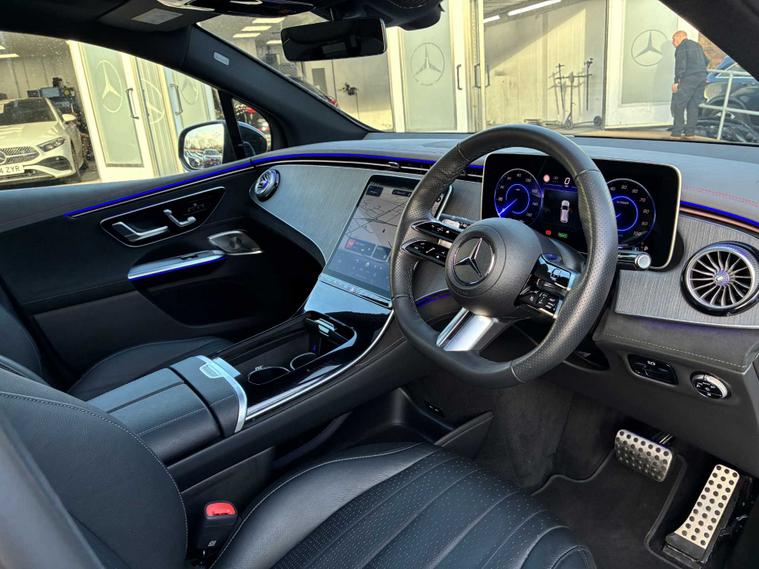 Finished in the stunning Alpine Grey, this Mercedes-Benz EQE 350 AMG Line Night Edition Premium 4MATIC SUV delivers a striking combination of cutting-edge electric performance, bold AMG styling and the luxurious refinement expected from the Mercedes-Benz EQ range. Its sleek, futuristic SUV design is enhanced beautifully by the Alpine Grey finish, giving it a confident and contemporary presence on the road. Powered by a sophisticated 91?kWh battery and dual-motor 4MATIC system producing 292?ps, the EQE 350 offers instant, seamless acceleration, exceptional refinement and superb traction in all conditions. Its impressive efficiency and long electric range make it ideal for both daily commuting and effortless long-distance travel. The AMG Line Night Edition styling adds a dynamic edge with gloss-black exterior elements, signature AMG bodywork and striking alloy wheels that perfectly complement the SUV’s sculpted lines. Inside, the Premium package elevates the cabin to a true luxury environment, offering heated memory seats, ambient lighting, a panoramic sunroof, Burmester surround sound and the latest generation MBUX widescreen interface. High-quality materials and a flowing, modern design create a refined and spacious atmosphere that feels advanced yet welcoming. With generous interior space, intelligent storage solutions and a carefully engineered driving position, the EQE SUV offers everyday practicality without compromising its premium appeal. Combining state-of-the-art electric technology, exceptional comfort and standout styling in Alpine Grey, this EQE 350 AMG Line Night Edition Premium represents an outstanding opportunity to own a highly specified, efficient and luxurious electric SUV from Mercedes-Benz. Please call Mercedes-Benz of Stoke directly on 01782492848 to reserve this vehicle or request a personalised walk-round video.