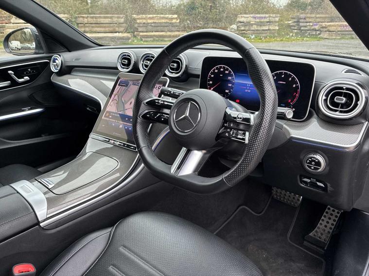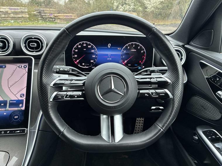 This 2024 Mercedes Benz C Class C200h AMG Line is a superb example, having had only one owner since new. It features a responsive 1.5 litre petrol hybrid engine, meeting Euro 6 emission standards. The AMG Line trim enhances its sporty appeal, and you'll appreciate the convenience of the Parking Package with its reversing camera and Active Parking Assist, which includes front and rear sensors. Inside, the Memory Package ensures your preferred seating position is always ready, while the THERMATIC two zone automatic climate control keeps everyone comfortable. Furthermore, Blind Spot Assist provides an extra layer of safety on your journeys.