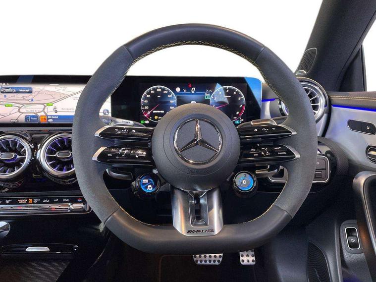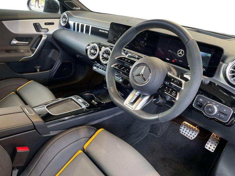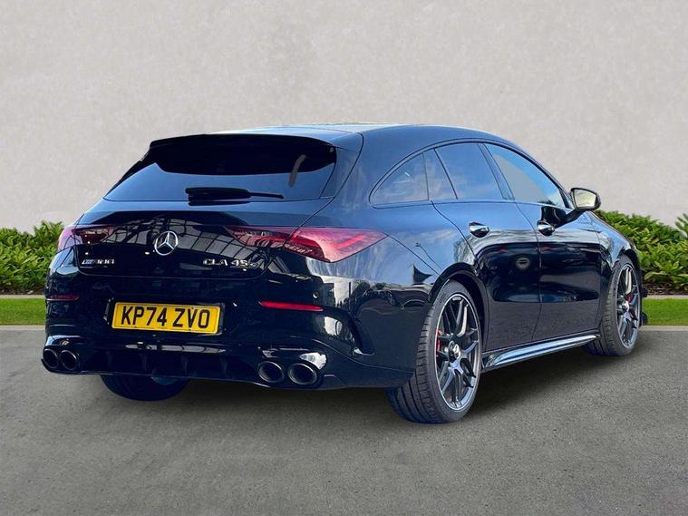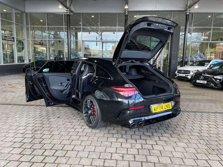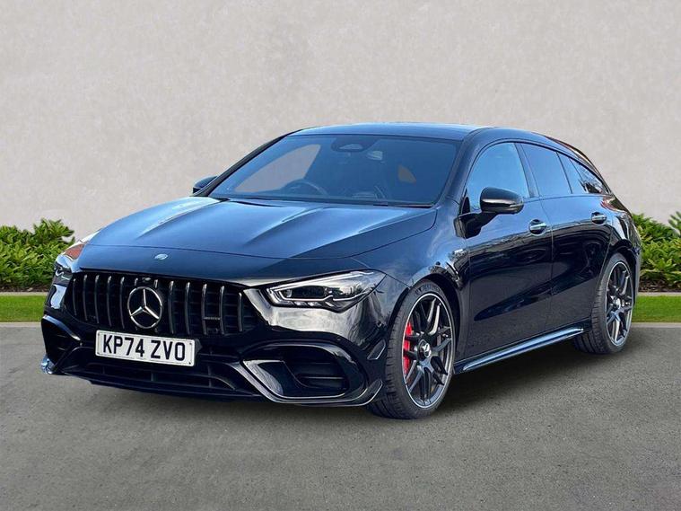Mercedes-Benz of Worcester are delighted to offer this AMG CLA 45 S 4Matic plus Shooting Brake, finished in Cosmos Black Metallic with a Two-tone leather Titanium Grey pearl/Black with yellow contrasting stitching. This is a stunning example and must be seen to fully appreciate. With 1 owner from new and being regularly serviced as well as being inspected here at Mercedes-Benz of Worcester by our fully trained and professional Mercedes-Benz technicians; we are confident you will be impressed with the quality of drive and performance. It offers AMG specification including, AMG Aerodynamics package, AMG RIDE CONTROL suspension, AMG Track PaceAMG Performance seats, AMG Night package, 19-inch AMG cross-spoke forged wheels, AMG SPEEDSHIFT Transmission, alongside Blind Spot Assist, Premium Navigation, 360° camera, Adaptive Highbeam Assist Plus, Heated front seats, Increased anti-theft protection, Parking Package with 360° camera, Panoramic sliding sunroof and much more. We also offer a wide range of purchasing options to suit your needs and hassle-free part-exchange, so you can be confident that you will receive the very best service & advice. All our Approved Mercedes Benz cars have a minimum of 12 months Mercedes Benz Warranty, Free Key Cover, Mot Cover and 1-year Roadside Assistance which continues when you service at any Mercedes Benz Main Retailer. We also perform background checks for accident damage and any mileage discrepancies to ensure we supply you with the highest possible standard of car. We pride ourselves on not only offering vehicles that meet our high standards but also that offer unrivalled value for money. Mercedes Benz of Worcester is here to assist you with all your motoring needs and strive for 100% customer satisfaction. We would love to arrange a personalised video to be sent to you. Please contact the team on 01902216918 as we look forward to taking your enquiry further.