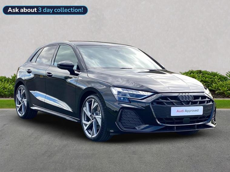 Reference: NX75LSK . Teesside Audi are offering a rare opportunity to own this AUDI A3 SPORTBACK 1.5 TFSI Black Edition Sportback 5dr Petrol S Tronic Euro 6 (s/s) (150 ps). This vehicle was registered by us for use by one of our colleagues & has been maintained by us in accordance with the manufacturers recommendations. The vehicle is now being readied for sale & as such represents a strong saving against the price of purchasing this as a brand new vehicle. In preparation for sale this vehicle has had all of it's software updates carried out and has passed our internal pre sale checks. - In accordance with the manufacturers requirement, this vehicle is sanctioned for handover from MARCH. ===================================================================== The A3 blends sporty driving with refined design. The A3 offers punchy engines, advanced tech, and a premium cabin. A strong entry into the Audi brand, ideal for first-time luxury buyers.Standard features on this car include Integrated SATELLITE NAVIGATION with real-time routing and traffic updates. VIRTUAL COCKPIT so that you can customise the digital dashboard with maps, gauges, and media. CRUISE CONTROL to maintain a steady speed without constant pedal input. REAR PARKING SENSORS to warn of objects behind while reversing. REAR CAMERA for easier and safer reversing. HEATED FRONT SEATS to keep your comfortable in cold weather conditions. PART LEATHER combining leather with cloth for a balanced premium interior. Plus lots more. FINISHED IN MYTHOS BLACK METALLIC PAINT ===================================================================== 150 MULTI POINT CHECK | AUDI PARTS |FACTORY TRAINED TECHNICIANS 12 MONTH MANUFACTURER BACKED WARRANTY & ROADSIDE ASSISTANCE. AUDI CONNECTED|HISTORY CHECKS ===================================================================== Lookers are an authorised representative for a wide range of award-winning car manufacturers, providing you with an unparalleled choice of quality and approved used cars, currently for sale. Our exceptional standards ensure you receive the best possible service when you purchase with us, ensuring peace of mind when you drive away with your new vehicle. With us representing so many great brands we are an excellent position to offer you a fair and transparent price for your part exchange. At Lookers, we care about our customers and want to ensure that the price you see is the price you pay. Our Transparent pricing policy simply means, honest, straightforward pricing offering our vehicles at the best price possible; ensuring no haggling or hassle for you.