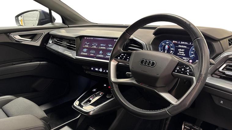 Reference: LL73RMO. Wearside Audi are offering a rare opportunity to own this AUDI Q4 S Line 40 82KW 204 PS Auto. This 1 owner vehicle has full service history, has been prepared for sale by our fully trained, experienced and skilled technicians passing our exacting pre sale checks and is ready to go. ============================================================ *Car does not have Rear Camera, Front Parking Sensors or Ambient Lighting Pack Plus ===================================================================== Audi’s compact electric SUV, the Q4 e-tron delivers modern styling, a refined ride, and all the benefits of EV driving. Spacious and tech-focused, it’s perfect for those making the jump to premium electric mobility.Standard features on this car include Integrated SATELLITE NAVIGATION with real-time routing and traffic updates. CLIMATE CONTROL which automatically regulates cabin temperature for you. VIRTUAL COCKPIT so that you can customise the digital dashboard with maps, gauges, and media. CRUISE CONTROL to maintain a steady speed without constant pedal input. REAR PARKING SENSORS to warn of objects behind while reversing. HEATED FRONT SEATS to keep your comfortable in cold weather conditions. PART LEATHER combining leather with cloth for a balanced premium interior. Plus lots more. - As a VAT Qualifying vehicle it has the additional benefit to VAT Registered individuals or companies buying the car solely for business use, as they could reclaim the 20% VAT from the purchase price. ===================================================================== 150 MULTI POINT CHECK | AUDI PARTS |FACTORY TRAINED TECHNICIANS 12 MONTH MANUFACTURER BACKED WARRANTY & ROADSIDE ASSISTANCE. AUDI CONNECTED|HISTORY CHECKS ===================================================================== Lookers are an authorised representative for a wide range of award-winning car manufacturers, providing you with an unparalleled choice of quality and approved used cars, currently for sale. Our exceptional standards ensure you receive the best possible service when you purchase with us, ensuring peace of mind when you drive away with your new vehicle. With us representing so many great brands we are an an excellent position to offer you a fair and transparent price for your part exchange. At Lookers, we care about our customers and want to ensure that the price you see is the price you pay. Our Transparent pricing policy simply means, honest, straightforward pricing offering our vehicles at the best price possible; ensuring no haggling or hassle for you.