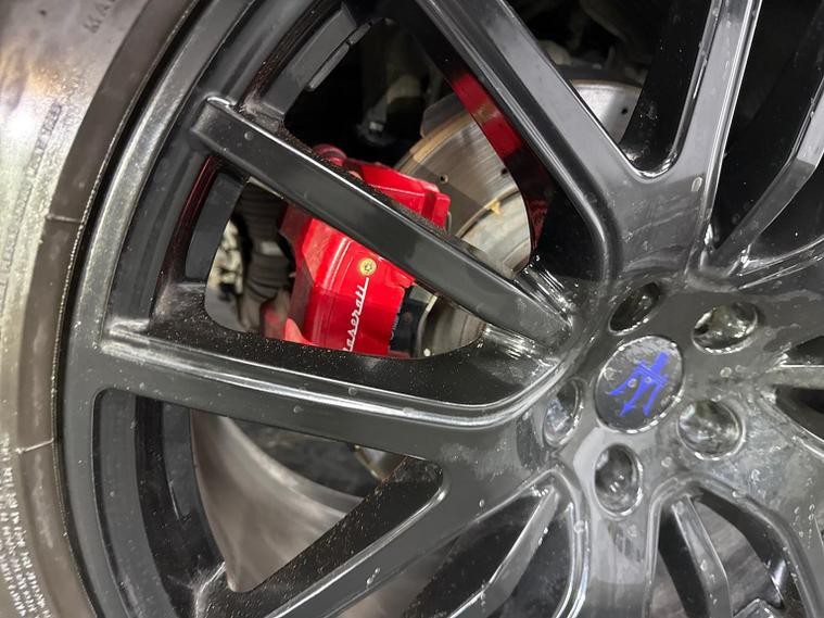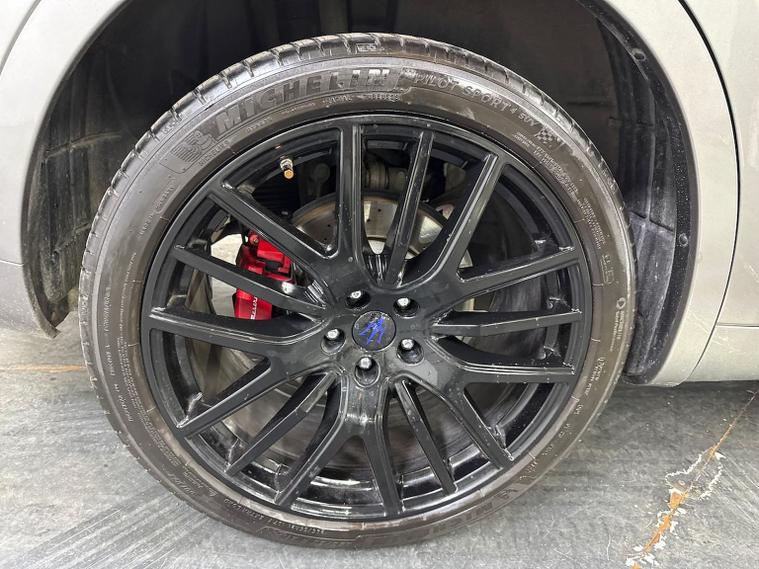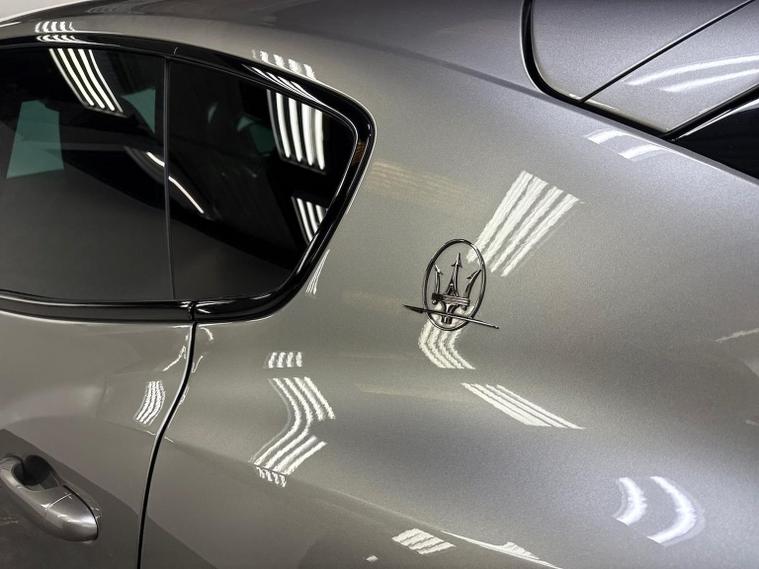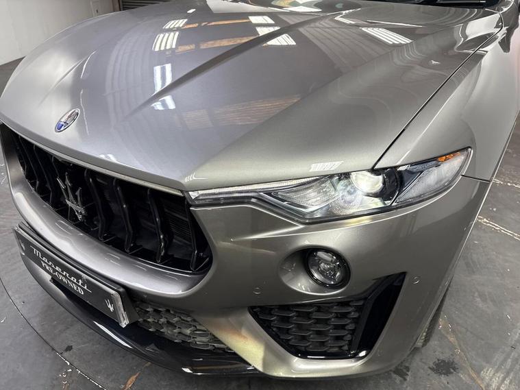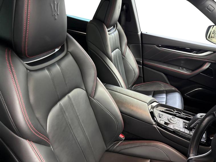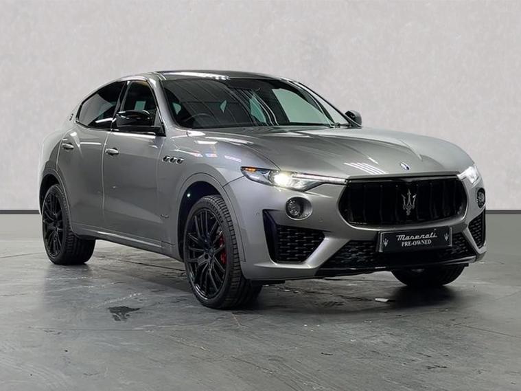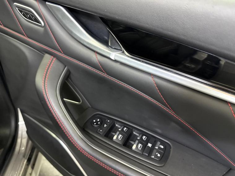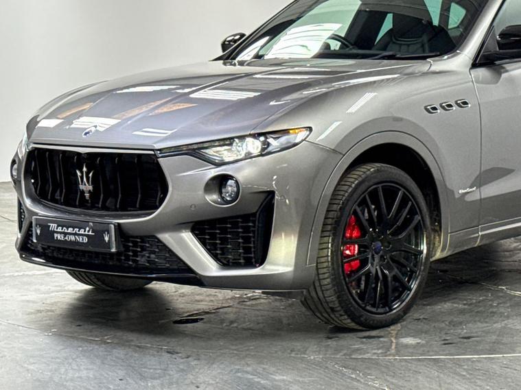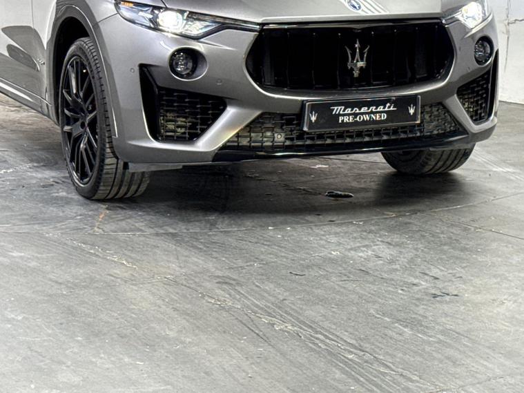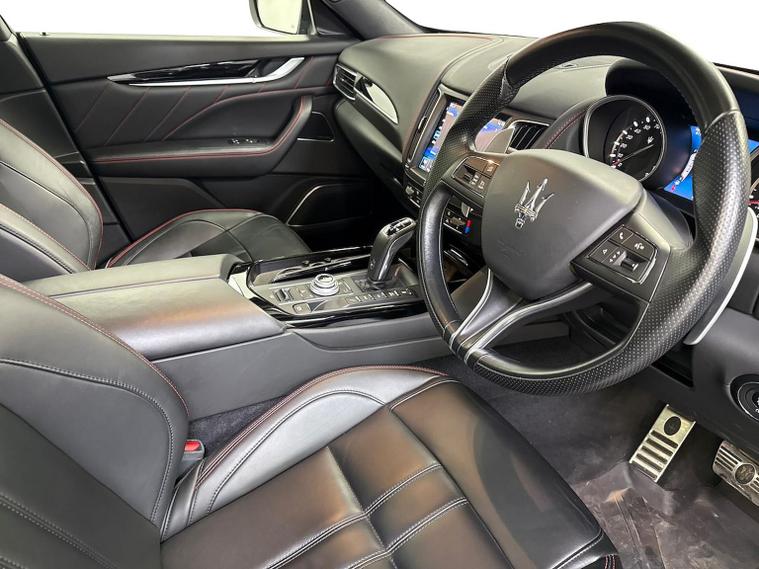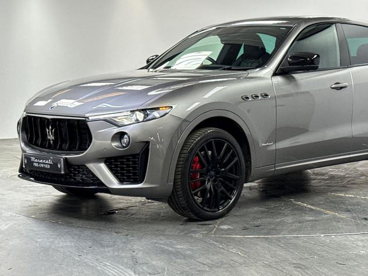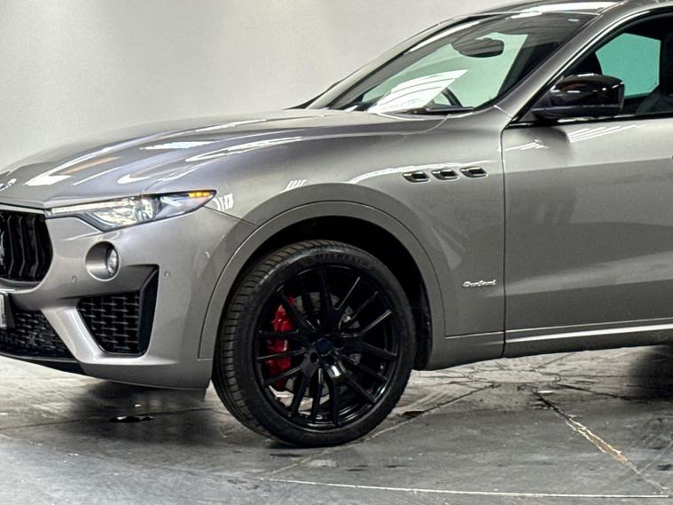 Levante GranSport S 430 BHP model. The factory specification consists of - Grigio Metallic Grey Exterior with a Nero Black Leather with Red Stitched Interior. Nerissimo Package, Panoramic Sunroof, Sort Close Doors, 21" Staggered Anteo Alloys, Red Brake Calipers, and a Premium Sound System.