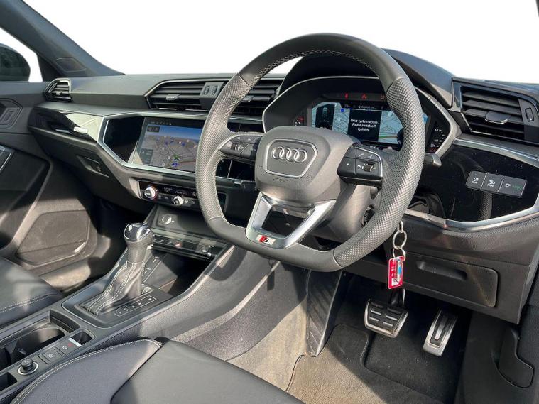 SG75ZTP. Glasgow Audi are offering a rare opportunity to own this AUDI Q3 Black Edition 35 TFSI 150 PS S tronic. This vehicle was registered by us for use by one of our colleagues & has been maintained by us in accordance with the manufacturers recommendations. The vehicle is now being readied for sale & as such represents a strong saving against the price of purchasing this as a brand new vehicle. In preparation for sale this vehicle has had all of it's software updates carried out and has passed our internal pre sale checks. - In accordance with the manufacturers requirement, this vehicle is sanctioned for handover from this month. ===================================================================== A compact SUV with space, comfort, and versatility. The Q3 features upscale materials, MMI infotainment, and a strong road presence. Ideal for small families or those upgrading from a hatchback to a premium crossover. This car is supplied with the following optional upgrades :- TECHNOLOGY PACK which adds smart driving aids and convenience tech. BLACK STYLING PACK for a more aggressive and sporty look. . Standard features on this car include Integrated SATELLITE NAVIGATION with real-time routing and traffic updates. SATELLITE NAVIGATION via APPLE CAR PLAY which allows integration using apps like Maps to help manage your journeys. FULL LEATHER delivering a luxury feel in the cabin. CLIMATE CONTROL which automatically regulates cabin temperature for you. VIRTUAL COCKPIT so that you can customise the digital dashboard with maps, gauges, and media. CRUISE CONTROL to maintain a steady speed without constant pedal input. FRONT AND REAR PARKING SENSORS to help manoeuvring in tight spaces whether you are going forward or reversing. REAR CAMERA for easier and safer reversing. HEATED FRONT SEATS to keep your comfortable in cold weather conditions. Plus lots more. ===================================================================== 150 MULTI POINT CHECK | AUDI PARTS |FACTORY TRAINED TECHNICIANS 12 MONTH MANUFACTURER BACKED WARRANTY & ROADSIDE ASSISTANCE. AUDI CONNECTED|HISTORY CHECKS ===================================================================== Lookers are an authorised representative for a wide range of award-winning car manufacturers, providing you with an unparalleled choice of quality and approved used cars, currently for sale. Our exceptional standards ensure you receive the best possible service when you purchase with us, ensuring peace of mind when you drive away with your new vehicle. With us representing so many great brands we are an excellent position to offer you a fair and transparent price for your part exchange. At Lookers, we care about our customers and want to ensure that the price you see is the price you pay. Our Transparent pricing policy simply means, honest, straightforward pricing offering our vehicles at the best price possible; ensuring no haggling or hassle for you.