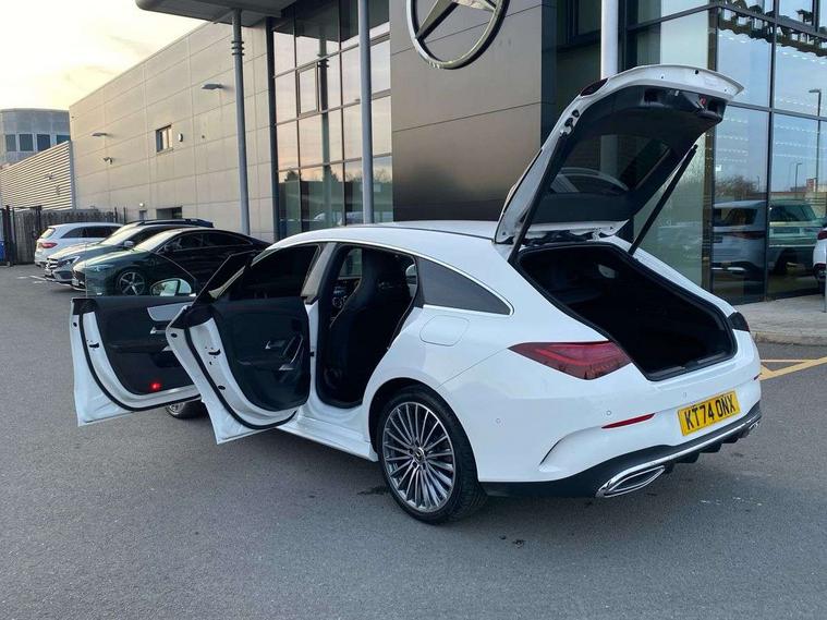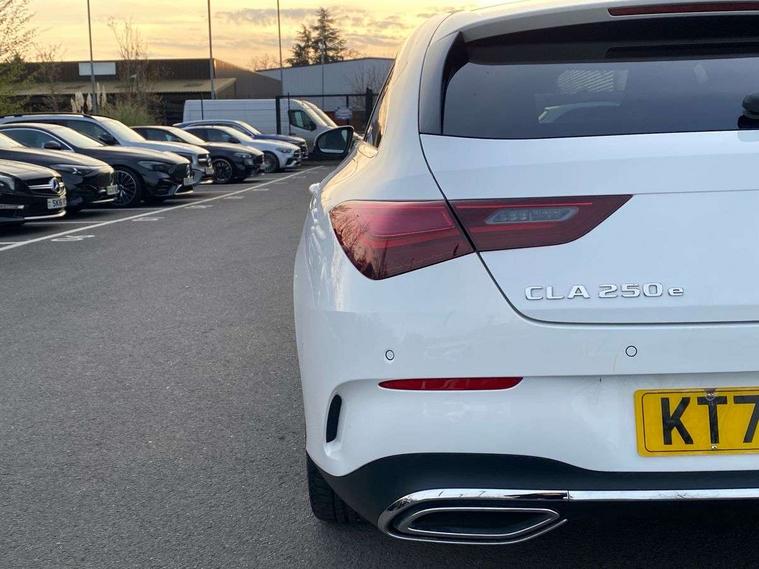This 2025 Mercedes-Benz CLA 250e AMG Line Premium Shooting Brake blends sleek coupé-inspired styling with the practicality of an estate and the efficiency of plug-in hybrid technology. With its 15.6kWh battery, refined petrol engine and high-spec Premium equipment, it delivers a smooth, modern and versatile driving experience — all backed by Mercedes-Benz Approved Used reassurance. 1.3-litre petrol engine paired with a powerful electric motor Combined output of 218 PS for smooth, responsive acceleration 15.6kWh battery offering impressive electric-only driving capability 8G-DCT dual-clutch automatic gearbox Ideal for short EV commutes and long-distance hybrid journeys Low running costs with zero-emission EV mode AMG body styling with sculpted bumpers & sporty side skirts LED High-Performance headlights Diamond grille with chrome pins AMG alloy wheels MBUX Navigation Keyless-Go MBUX widescreen cockpit with dual digital displays Wireless Apple CarPlay & Android Auto Voice control (“Hey Mercedes”) Heated front seats Ambient interior lighting Reversing camera & advanced parking assistance Comprehensive safety systems including: Active Brake Assist Lane-Keeping Assist Blind Spot Assist Dual-zone climate control Mercedes-Benz Approved Used Benefits Mercedes Warranty until 2028