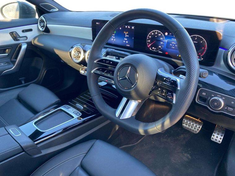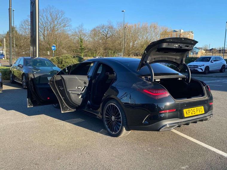 This 2025 Mercedes-Benz CLA 220d AMG Line Premium Plus blends sleek coupé styling, diesel efficiency and top-tier luxury in one of the most desirable compact four-door coupés on the market. With its refined 190 PS diesel engine, advanced MBUX technology and the highest-level Premium Plus equipment, it delivers a dynamic, comfortable and modern Mercedes-Benz driving experience — all backed by Approved Used reassurance. 2.0-litre CLA 220d diesel engine (190 PS) Smooth, responsive 8G-DCT automatic gearbox Strong performance with excellent fuel economy Euro 6 (s/s) compliant Ideal for long-distance cruising and everyday driving AMG body styling with sculpted bumpers & sporty side skirts LED High-Performance headlights Diamond grille with chrome pins AMG alloy wheels Panoramic glass sunroof Burmester surround sound system Head-Up Display MBUX Navigation Keyless-Go Comfort Package Memory Package MBUX widescreen cockpit with dual digital displays Wireless Apple CarPlay & Android Auto Voice control (“Hey Mercedes”) Heated front seats Ambient interior lighting Reversing camera & advanced parking assistance Comprehensive safety systems including: Active Brake Assist Lane-Keeping Assist Blind Spot Assist Dual-zone climate control Mercedes-Benz Approved Used Benefits Mercedes-Benz warranty until 2028