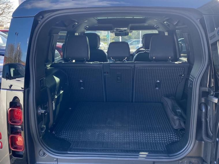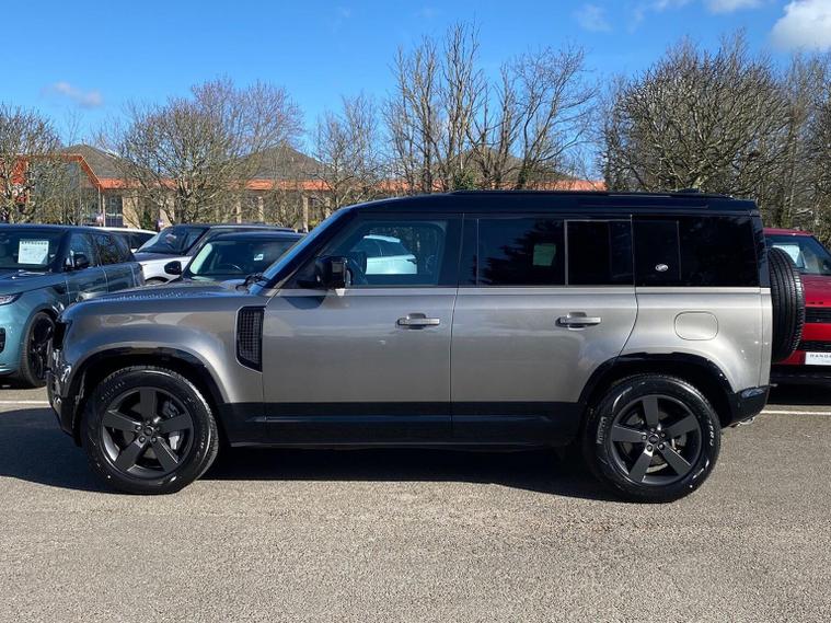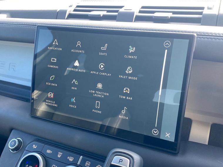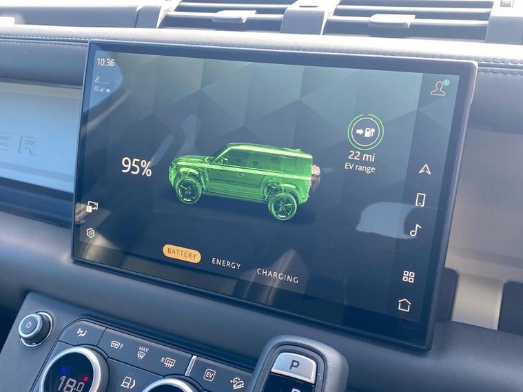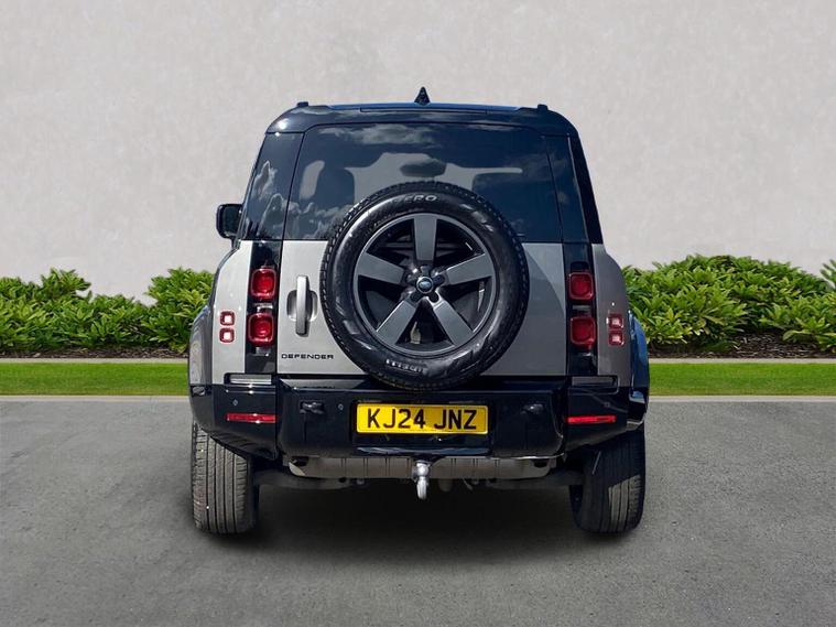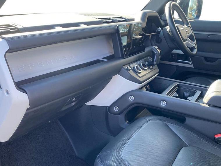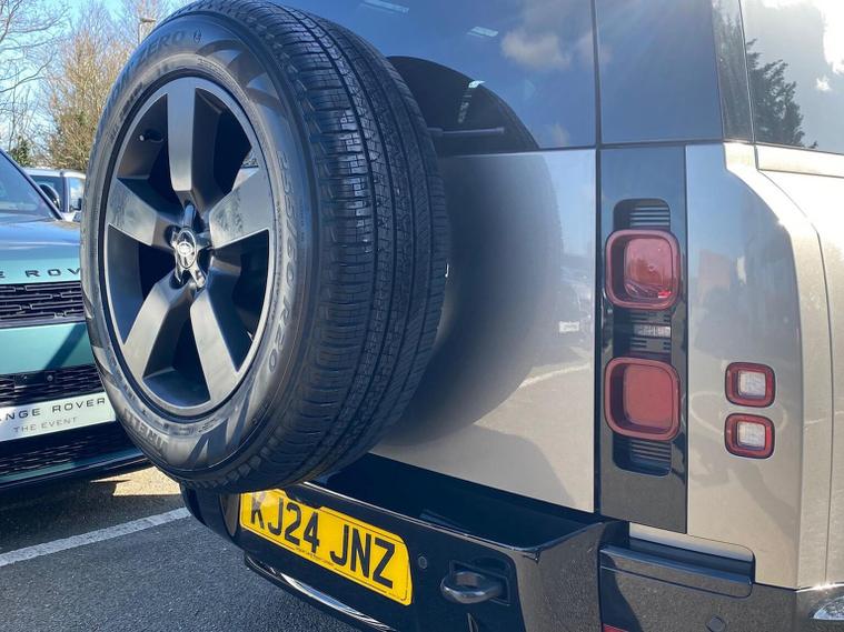 This 2024 Land Rover Defender 110 P400e X Dynamic HSE is a Land Rover manufacturer approved vehicle with a full service history and only one owner. It features a 2.0 litre petrol plug in hybrid engine, four wheel drive and meets Euro 6 emissions standards. This impressive model boasts an Extended Black Exterior Pack, a Black Contrast Signature Graphic with Interior Storage, and a heated steering wheel for added comfort. Inside, you will find 14 way heated and cooled electric memory front seats with 4 way manual headrests, and Adaptive Cruise Control to make journeys more relaxing. The Defender 110 P400e X Dynamic HSE offers exceptional performance, accelerating from 0 to 60mph in just 5.4 seconds, demonstrating its capability. With a substantial towing weight of 3500 kg and generous boot space, this vehicle is as practical as it is powerful. These attributes, combined with its advanced technology and luxurious appointments, set this Defender apart from other vehicles in its class, offering a superior driving experience.