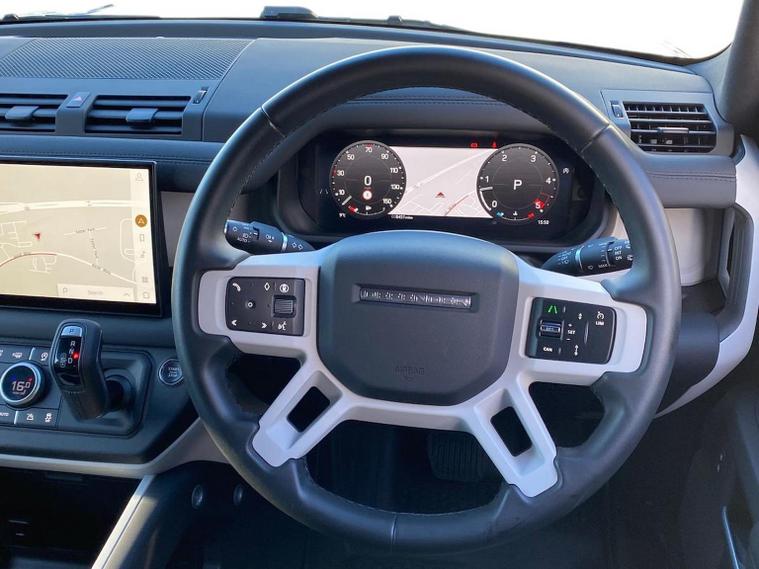 Introducing this VAT-Qualifying Land Rover Defender 3.0 D250 Hard Top S Auto, a superbly presented commercial example showing just 8, 421 miles and finished in the striking Tasman Blue. This distinctive colour gives the Defender a confident and contemporary presence, while the Ebony Resist and Resolve interior provides a durable, practical and hard-wearing environment perfectly suited to both business and everyday use. Powered by the smooth and efficient 3.0-litre D250 diesel engine, the Defender Hard Top delivers strong torque, composed performance and impressive refinement across all driving environments. Whether covering long motorway distances, navigating rural routes or tackling demanding worksites, the D250 powertrain ensures a confident, assured and highly capable driving experience. The Hard Top’s commercial configuration offers exceptional load space, robust materials and the legendary Defender toughness that businesses rely on. This example benefits from a desirable selection of factory-fitted features that enhance both practicality and style. The electrically deployable tow bar provides exceptional convenience for towing duties, deploying and retracting at the touch of a button. The 19-inch Gloss Black Style 6010 alloy wheels give the Defender a bold, modern stance, while the white contrast roof adds a classic design touch that highlights the vehicle’s iconic silhouette. A spare wheel lock is also fitted, offering additional security and peace of mind. As an S-specification Hard Top, this Defender comes equipped with a comprehensive range of standard features designed to support both comfort and functionality. The exterior benefits from LED headlights with signature daytime running lights, rugged body protection elements and the Defender’s unmistakable utilitarian design. Inside, the cabin offers a practical yet refined environment with durable Resist upholstery, a clear and intuitive digital driver display and the advanced Pivi Pro infotainment system, which provides seamless connectivity through Apple CarPlay and Android Auto. The Defender’s renowned all-wheel-drive system, combined with Terrain Response technology, ensures confident performance on a wide range of surfaces, while a suite of driver-assistance features, including lane keep assist, traffic sign recognition and emergency braking, provides reassurance on every journey. With its low mileage, VAT-Qualifying status, desirable colour combination and excellent specification, this Defender 110 D250 Hard Top S represents an outstanding opportunity for businesses and private buyers alike seeking a capable, stylish and highly versatile commercial SUV. As a Land Rover Approved vehicle, it has undergone meticulous inspection and full provenance checks, ensuring complete confidence in its quality. We offer tailored part-exchange valuations, competitive finance options and flexible purchasing solutions including Click & Collect and Home Delivery, all supported by our dedicated team