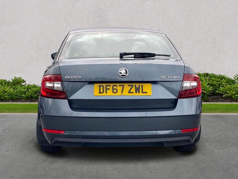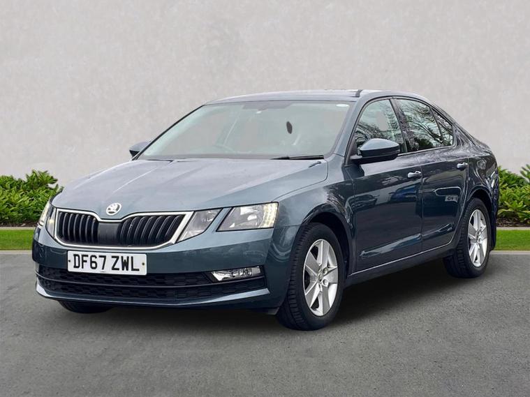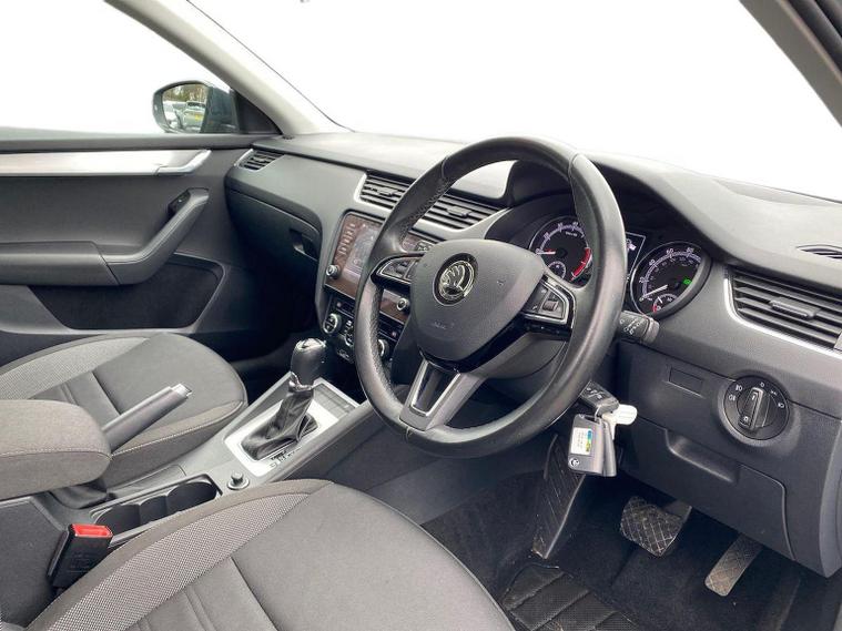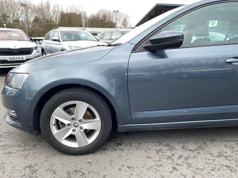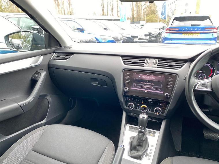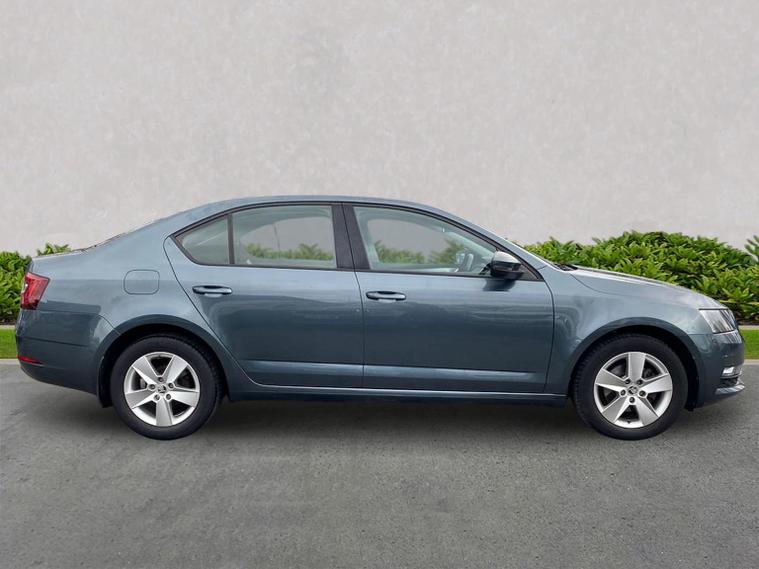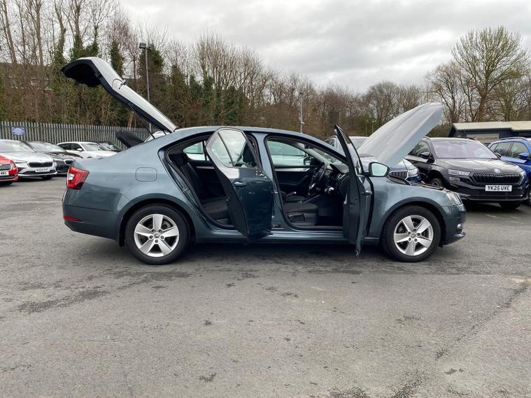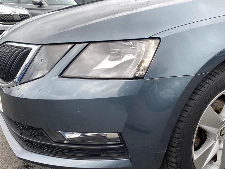 Skoda Octavia SE 1.4 TSI 150 PS DSG in Quartz Grey Metallic with black interior includes the optional high functionality rear LED lights and a temporary spare wheel with tool kit and jack. Standard equipment includes Bolero 8 inch touchscreen DAB radio Bluetooth SmartLink USB AUX and SD card input eight speakers rear parking sensors cruise control driver fatigue assistant driving mode selection gear change recommendation trip computer tyre pressure monitoring and voice control. Exterior features include 16 inch Ilias alloy wheels body coloured trim heated electrically adjustable door mirrors front and rear electric windows tinted glass rear mudflaps halogen projector headlights LED daytime running lights front fog lights high level third brake light and a tyre repair kit. Inside it offers dual zone air conditioning height adjustable front seats with lumbar support height adjustable front and rear head restraints leather multifunction steering wheel illuminated and air conditioned glovebox front armrest rear seat pockets glasses holder lashing points illuminated boot vanity mirrors split folding rear seats interior lighting and door pillar switches. Safety equipment includes front side curtain and driver knee airbags passenger airbag deactivation ESC ABS EBD MSR ASR EDS HBA DSR hill hold control post collision braking XDS stability control fuel cut off switch ISOFIX on rear seats seatbelt warnings alarm immobiliser rear wash wipe and remote central locking. We offer personal video appointments test drives and can arrange finance.