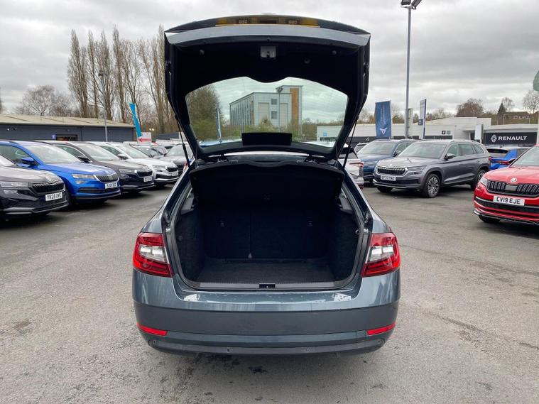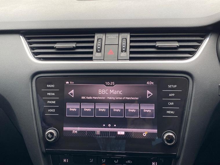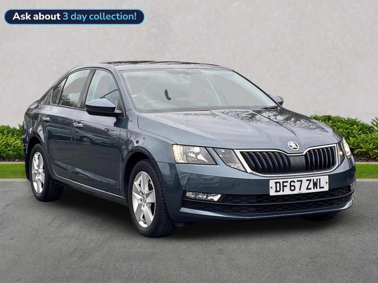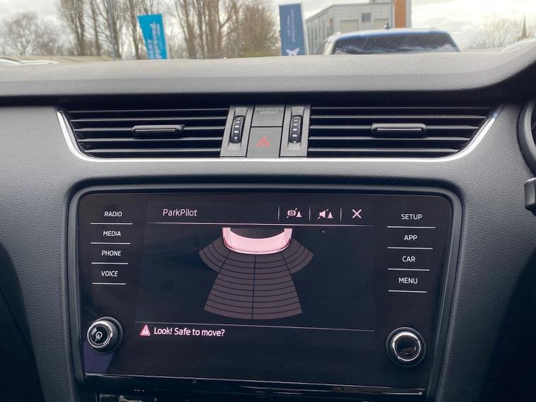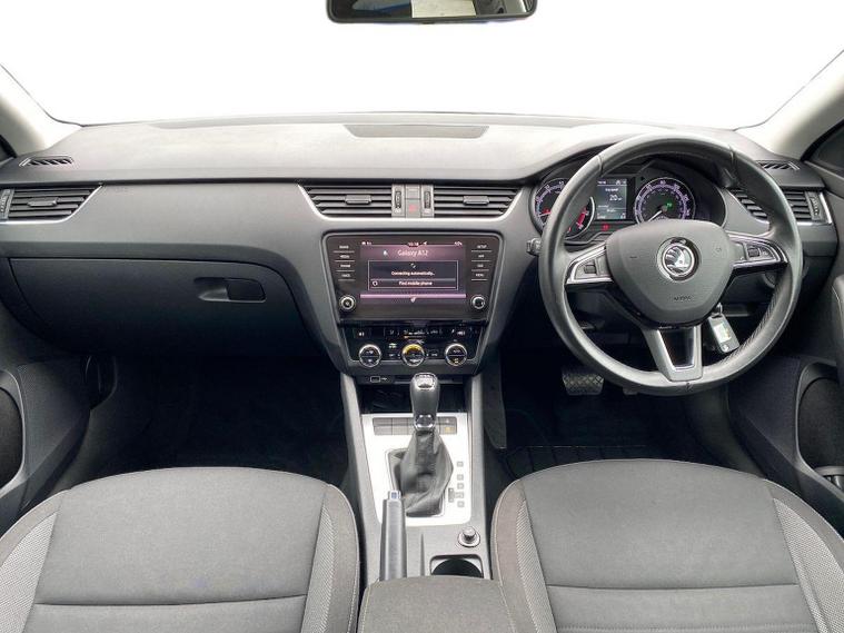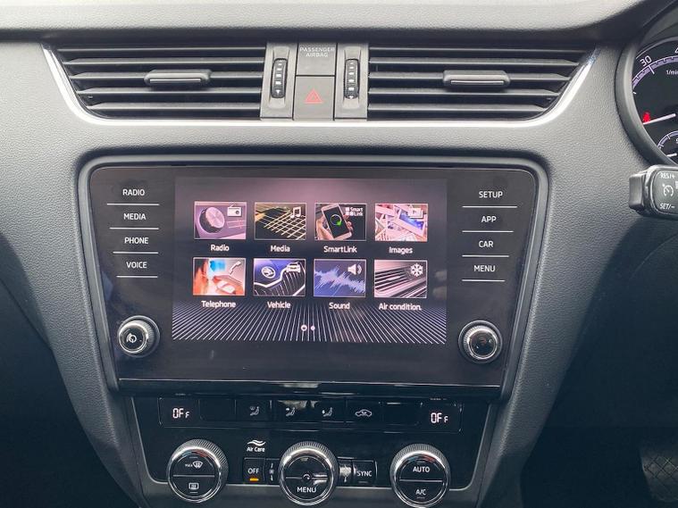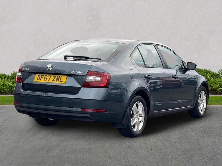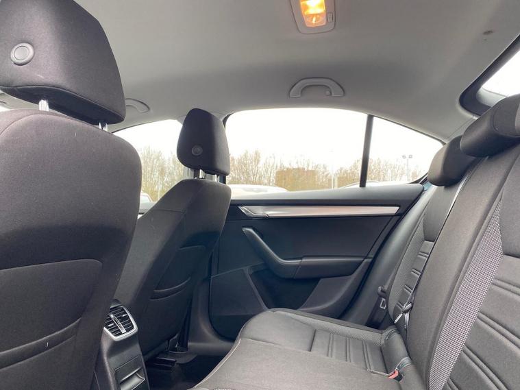 Skoda Octavia SE 1.4 TSI 150 PS DSG in Quartz Grey Metallic with black interior includes the optional high functionality rear LED lights and a temporary spare wheel with tool kit and jack. Standard equipment includes Bolero 8 inch touchscreen DAB radio Bluetooth SmartLink USB AUX and SD card input eight speakers rear parking sensors cruise control driver fatigue assistant driving mode selection gear change recommendation trip computer tyre pressure monitoring and voice control. Exterior features include 16 inch Ilias alloy wheels body coloured trim heated electrically adjustable door mirrors front and rear electric windows tinted glass rear mudflaps halogen projector headlights LED daytime running lights front fog lights high level third brake light and a tyre repair kit. Inside it offers dual zone air conditioning height adjustable front seats with lumbar support height adjustable front and rear head restraints leather multifunction steering wheel illuminated and air conditioned glovebox front armrest rear seat pockets glasses holder lashing points illuminated boot vanity mirrors split folding rear seats interior lighting and door pillar switches. Safety equipment includes front side curtain and driver knee airbags passenger airbag deactivation ESC ABS EBD MSR ASR EDS HBA DSR hill hold control post collision braking XDS stability control fuel cut off switch ISOFIX on rear seats seatbelt warnings alarm immobiliser rear wash wipe and remote central locking. We offer personal video appointments test drives and can arrange finance.