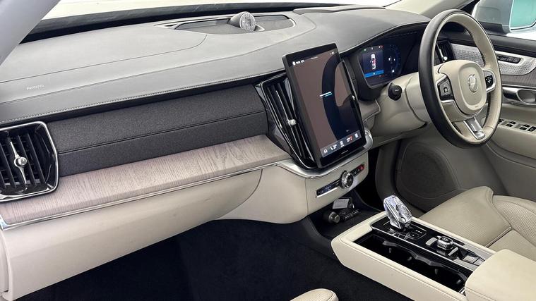 Blond headlining Front seat massage Grey Ash decor Tailored leather steering wheel 8-speed Geartronic™ automatic. AWD Pedals Crystal gear shift by Orrefors® Third row air conditioning Four-zone climate system Afterrun parking climate Passenger airbag cut-off switch Dual-stage airbags Knee airbag. driver side Panoramic roof Road Sign Information Lane Keeping Aid and Lane Departure Warning Front grille with chrome frame and chrome inserts Heated grill emblem Matrix-design LED headlights Headlight cleaning Trailer lamp control 12.3-inch driver display Google Assistant. Google Maps and Google Play Store Adaptive cruise control Head-up display Pilot Assist Intelligent Speed Assist (ISA) Volvo Cars App remote functions Air-ventilated subwoofer Digital Audio Broadcasting (DAB+) Bowers & Wilkins High Fidelity audio system Power retractable door mirrors Power passenger seat with memory Wireless phone charging Central locking controls. front and rear doors Remote key Door mirror covers. colour coordinated Double locking Tinted rear windows BLIS™ and Cross Traffic Alert Alarm Power child safety lock Keyless entry with hands-free power tailgate Air purifier and remote cabin pre-cleaning Digital owners manual Textile mats. third-row Tailored dashboard and door top panels Ventilated nappa leather upholstery Front seat massage Power driver seat with memory Power passenger seat Front seat ventilation Heated front seats Heated rear seats Power folding outer rear head restraints. second row 7 seats Mechanical release second seat row Power side bolsters Power 4-way lumbar support Textile interior cabin floor mats Protection net Grocery bag holder Rear centre armrest Integrated booster cushion Illuminated vanity mirrors Interior illumination. high level Power outlet. load compartment First-aid kit Load cover Rear door sun curtains Auto-dimmed rear view mirrors Hidden storage Power cushion extension. driver Hill Start Assist Tyre pressure monitoring Active air suspension Oncoming Lane Mitigation Rear Collision Warning Hill Descent Control Slippery road alert Emergency brake light Heated steering wheel Adaptive power steering 21? 5-multi spoke black diamond cut Temporary spare wheel Lockable wheel bolts Wiper blades with integrated washers Body-coloured door handles with ground lighting Tailgate scuff plate. stainless steel Illuminated sill moulding Bright aluminium trim around the side windows Roof rails. bright aluminium Warning triangle All-wheel Drive (AWD) Laminated side and rear windows Park assist. front. rear and sides 360° camera Alcohol lock software (not available in the UK) Protective cap kit. Matt Tech Grey Apple CarPlay Comfort front seats 11.2-inch centre disp