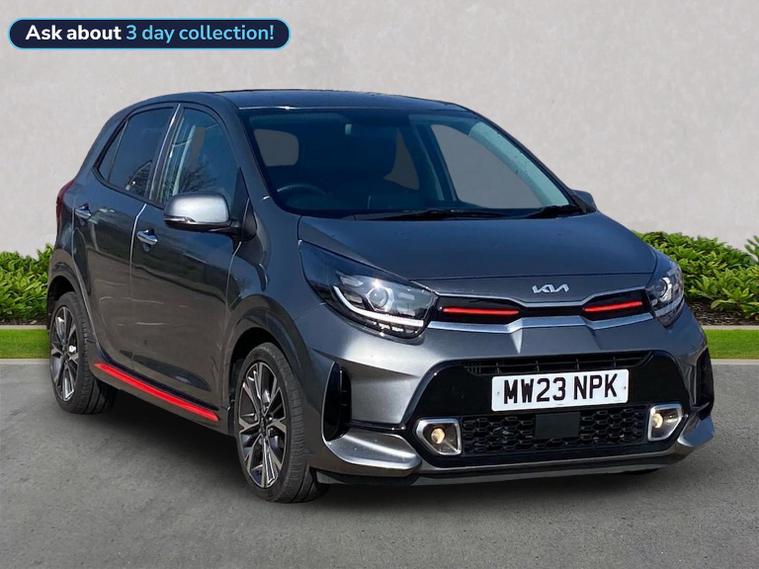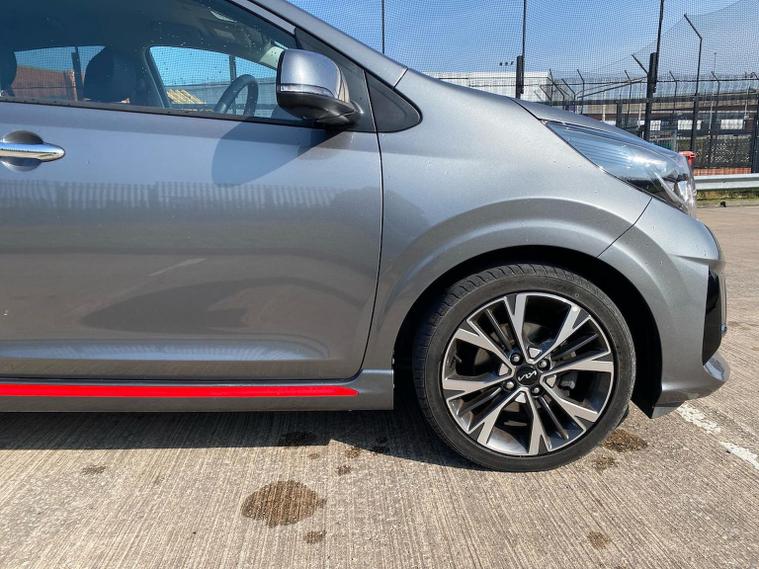 Introducing the stunning 2023 Kia Picanto 1.0 T-GDI GT-Line S hatchback, a remarkable vehicle that combines style, performance, and practicality. With a powerful 99 bhp turbo engine, this grey beauty is not just a head-turner but also a joy to drive. Equipped with a host of modern features, including Bluetooth connectivity, climate control, and a rear-facing camera, it ensures a comfortable and connected driving experience. The vehicle also boasts front and rear parking sensors, heated seats, and a sleek leather interior in black and red, making it a perfect choice for those who appreciate both comfort and aesthetics. This particular model has had just 1 previous owner and comes with the remaining manufacturer warranty, providing peace of mind for your purchase. With a mileage of only 12, 101 miles, it’s in excellent condition and ready for its next adventure. The Picanto is designed for urban living, offering nimble handling and efficient fuel consumption, making it an ideal companion for city driving. At Kia Stockport, we pride ourselves on our commitment to customer satisfaction. As part of Lookers, one of the top retail groups in the UK with over 100 years of heritage, we offer a full range of aftersales provisions to keep your vehicle in top shape. Our dedicated staff are trained to help you find your ideal car and ensure you have a seamless experience. Don’t miss out on this fantastic opportunity. Contact us today to arrange a test drive!