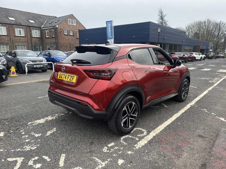 Now available at Lookers Nissan Newcastle, this Nissan Juke 1.0 DIG-T 114 N-Connecta offers bold crossover styling, excellent fuel efficiency and strong everyday practicality, making it an ideal choice for commuters, new drivers or small families. Powered by a refined 1.0-litre turbocharged DIG-T petrol engine producing 114PS and paired with a smooth manual gearbox, it delivers responsive performance, low running costs and a confident, comfortable drive in all conditions. The N-Connecta trim provides an impressive level of equipment and technology. Key features include NissanConnect infotainment with Apple CarPlay and Android Auto, satellite navigation, reversing camera, front and rear parking sensors, digital driver display, cruise control, lane assist, climate control, keyless start and stylish alloy wheels. This ensures a modern, connected and user-friendly driving experience. Externally, the Juke stands out with its distinctive crossover design, LED daytime running lights, sculpted body lines and sporty stance. Inside, the cabin offers supportive seating, high-quality materials, intuitive controls and practical storage throughout, along with a versatile boot—perfect for daily driving, commuting and weekend plans. This vehicle also benefits from documented service history for added peace of mind: • 26/01/2026 – 5, 769 miles As a Lookers Approved Used vehicle, this Nissan Juke has been fully inspected by manufacturer-trained technicians, is HPI clear, professionally valeted and prepared to a high standard. Secure this Juke N-Connecta today with a fully refundable £250 deposit, with nationwide delivery and flexible finance options available—making it easy and convenient to own this stylish, efficient and well-equipped compact SUV.