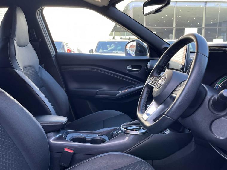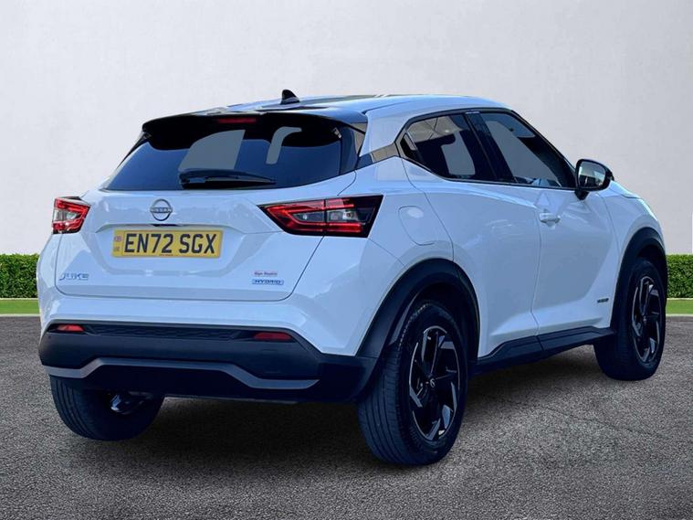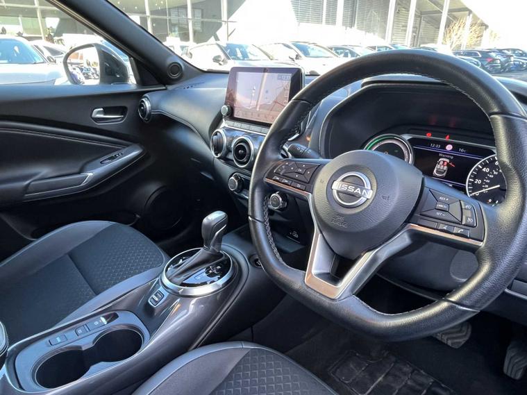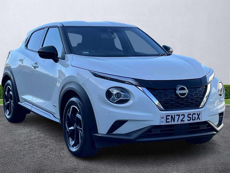 Experience stylish design, hybrid efficiency and impressive everyday practicality with this 2023 72-plate Nissan JUKE 1.6 Hybrid N-Connecta Auto, finished in the crisp and modern Arctic White. With one owner from new and a full service history, this well-maintained example offers excellent peace of mind and superb value. Powered by Nissan’s advanced 1.6 Hybrid powertrain, this JUKE delivers smooth, responsive performance by seamlessly combining petrol and electric power for maximum efficiency. The automatic transmission ensures a relaxed, refined drive, making this compact SUV perfect for both busy city streets and longer motorway journeys. The N-Connecta trim provides a brilliant blend of comfort, connectivity and convenience. Key features include an 8" touchscreen infotainment system with built-in navigation, Apple CarPlay and Android Auto, a rear-view camera, intelligent cruise control, keyless entry, dual-zone climate control, privacy glass and stylish alloy wheels. The modern, well-designed cabin offers comfortable seating and excellent usability for everyday driving. Finished in Arctic White, this JUKE stands out with its bold styling and confident road presence, perfectly complementing its sharp design lines. Fully inspected and prepared by our approved technicians at Lookers Nissan Sunderland, it is presented in excellent condition and ready to drive away today. If you’re looking for a stylish, efficient and well-equipped hybrid crossover with great history, this Nissan JUKE N-Connecta Hybrid is an outstanding choice. Contact Lookers Nissan Sunderland to arrange your viewing or test drive.