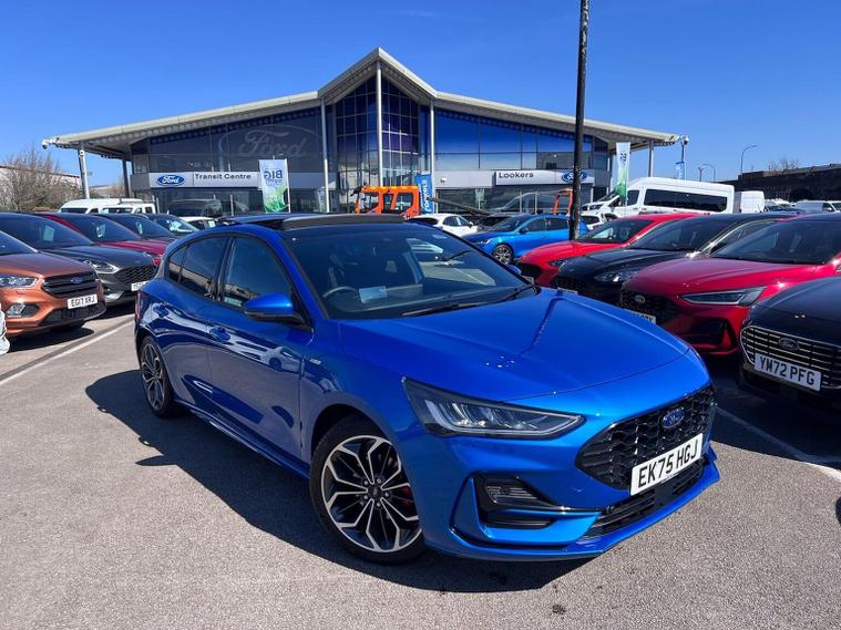 ***FORD DIRECT PREMIUM APPROVED***Optional extras from new include PARKING PACK (REAR VIEW CAMERA, DOOR EDGE GUARDS & AUTO PARK ASSIST), DRIVER ASSISTANCE PACK (INCLUDES ADAPTIVE CRUISE CONTROL, AUTO HIGH BEAM ASSIST & DRIVER ALERT SYSTEM), BLIND SPOT DETECTION SYSTEM (BLIS), HEADS UP DISPLAY & ELECTRIC PANORAMIC OPENING SUNROOF. Other standard features include 18" DIAMOND CUT ALLOYS, FULL ST LINE SPORTS STYLING BODY KIT WITH REAR SPOILER & PRIVACY GLASS, SYNC 4 13.2" LARGE TOUCH SCREEN ENTERTAINMENT WITH SATELLITE NAVIGATION & DAB RADIO, DIGITAL COCKPIT, COMPATIBLE WITH APPLE CAR PLAY & ANDROID AUTO, SPORTS FRONT SEATS WITH FLAT BOTTOM MULTI FUNCTION STEERING WHEEL & STAINLESS STEEL RACE PEDALS, HEATED FRONT SEATS & HEATED STEERING WHEEL, WIRELESS CHARGING PAD, B&O PLAYER, BLUETOOTH WITH VOICE COMMAND, CLIMATE CONTROLLED AIR CONDITIONING, QUICK CLEAR HEATED FRONT WINDSCREEN FOR THOSE FROSTY MORNINGS AND SO MUCH MORE . We're absolutely delighted to offer this stunning latest shape Focus ST Line X as part of our Approved Used stock. This top of the range Focus with only 1026 miles is presented in stunning DESERT ISLAND BLUE metallic colour with contrasting sports cloth trim. We believe this excellent value Focus with most optional extras from new is a pure joy to drive with effective hybrid technology delivering smooth & efficient power (155 BHP) on every surface. This car needs to be viewed and driven to be truly appreciated so why wait, call now to enquire***2 YEARS FREE RAC ROADSIDE ASSISTANCE WITH THIS CAR***Lookers Ford Sheffield (S4 7UQ) ARE A FORD APPROVED RETAILER. WE OFFER COMPETITIVE FINANCE RATES AND ALL OUR VEHICLES ARE THOROUGHLY INSPECTED & HPI CLEAR. AS PART OF THE LOOKERS LIMITED GROUP, WE HAVE ACCESS TO OVER 40 DIFFERENT BRANDS, SO WE ARE BEST PLACED TO FIND THE CORRECT VALUE FOR YOUR PART EXCHANGE. BUY WITH CONFIDENCE FROM A COMPANY ESTABLISHED IN 1908. LOOKERS A GOOD DEAL, BETTER** PLEASE CALL NOW FOR MORE INFORMATION & A PERSONALISED VIDEO SHOWING YOU YOUR NEXT CAR t: 01143389217 Unless otherwise stated, vehicles may have previously been used for business or hire purposes and so may have had multiple users. Where we hold documents relating to vehicle history, these are available for inspection on request.