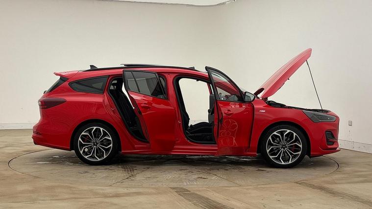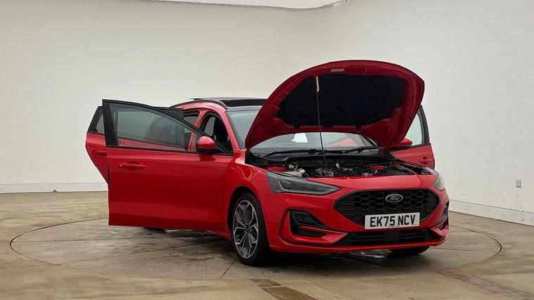 ***FORD DIRECT PREMIUM APPROVED***All optional extras from new which include DYNAMIC MATRIX LED HEADLIGHTS, PARKING PACK (REAR VIEW CAMERA, DOOR EDGE GUARDS & AUTO PARK ASSIST), DRIVER ASSISTANCE PACK (INCLUDES ADAPTIVE CRUISE CONTROL, AUTO HIGH BEAM ASSIST & DRIVER ALERT SYSTEM), BLIND SPOT DETECTION SYSTEM (BLIS), HEAD UP DISPLAY, HANDSFREE POWER TAILGATE & ELECTRIC PANORAMIC OPENING SUNROOF. Other standard features include 18" DIAMOND CUT ALLOYS, FULL ST LINE SPORTS STYLING BODY KIT WITH REAR SPOILER & PRIVACY GLASS, SYNC 4 13.2" LARGE TOUCH SCREEN ENTERTAINMENT WITH SATELLITE NAVIGATION & DAB RADIO, DIGITAL COCKPIT, COMPATIBLE WITH APPLE CAR PLAY & ANDROID AUTO, SPORTS FRONT SEATS WITH FLAT BOTTOM MULTI FUNCTION STEERING WHEEL & STAINLESS STEEL RACE PEDALS, HEATED FRONT SEATS & HEATED STEERING WHEEL, WIRELESS CHARGING PAD, B&O PLAYER, BLUETOOTH WITH VOICE COMMAND, CLIMATE CONTROLLED AIR CONDITIONING, QUICK CLEAR HEATED FRONT WINDSCREEN FOR THOSE FROSTY MORNINGS AND SO MUCH MORE . We're absolutely delighted to offer this stunning latest shape Focus ST Line X as part of our Approved Used stock. This top of the range Focus with only 3850 miles is presented in stunning RACE RED colour with contrasting sports cloth trim. We believe this excellent value Focus with all optional extras from new is a pure joy to drive with effective hybrid technology delivering smooth & efficient power (155 BHP) on every surface. This car needs to be viewed and driven to be truly appreciated so why wait, call now to enquire*** 2 YEARS FREE RAC ROADSIDE ASSISTANCE WITH THIS CAR***Lookers Ford Sheffield (S4 7UQ) ARE A FORD APPROVED RETAILER. WE OFFER COMPETITIVE FINANCE RATES AND ALL OUR VEHICLES ARE THOROUGHLY INSPECTED & HPI CLEAR. AS PART OF THE LOOKERS LIMITED GROUP, WE HAVE ACCESS TO OVER 40 DIFFERENT BRANDS, SO WE ARE BEST PLACED TO FIND THE CORRECT VALUE FOR YOUR PART EXCHANGE. BUY WITH CONFIDENCE FROM A COMPANY ESTABLISHED IN 1908. LOOKERS A GOOD DEAL, BETTER** PLEASE CALL NOW FOR MORE INFORMATION & A PERSONALISED VIDEO SHOWING YOU YOUR NEXT CAR t: 01143389217 Unless otherwise stated, vehicles may have previously been used for business or hire purposes and so may have had multiple users. Where we hold documents relating to vehicle history, these are available for inspection on request.