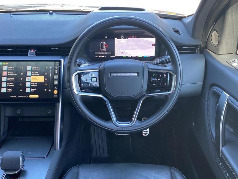 This 2024 Land Rover Discovery Sport P300e Dynamic HSE is a Land Rover manufacturer approved vehicle with a full service history and only one owner from new. This four wheel drive model features a 1.5 litre petrol plug in hybrid engine and meets Euro 6 emissions standards. It comes equipped with stylish 19 inch gloss black alloy wheels, black roof rails, a head up display, and a fixed panoramic roof for an open and airy cabin feel. Bluetooth connectivity is also included for seamless integration of your devices. The Discovery Sport P300e Dynamic HSE offers impressive performance, accelerating from 0 to 60 miles per hour in just 6.2 seconds, demonstrating its dynamic capability. This acceleration figure is a key indicator of how this vehicle outperforms many others in its class. Furthermore, the generous boot space provides ample room for all your luggage and gear, making it a practical choice for families and adventurers alike.