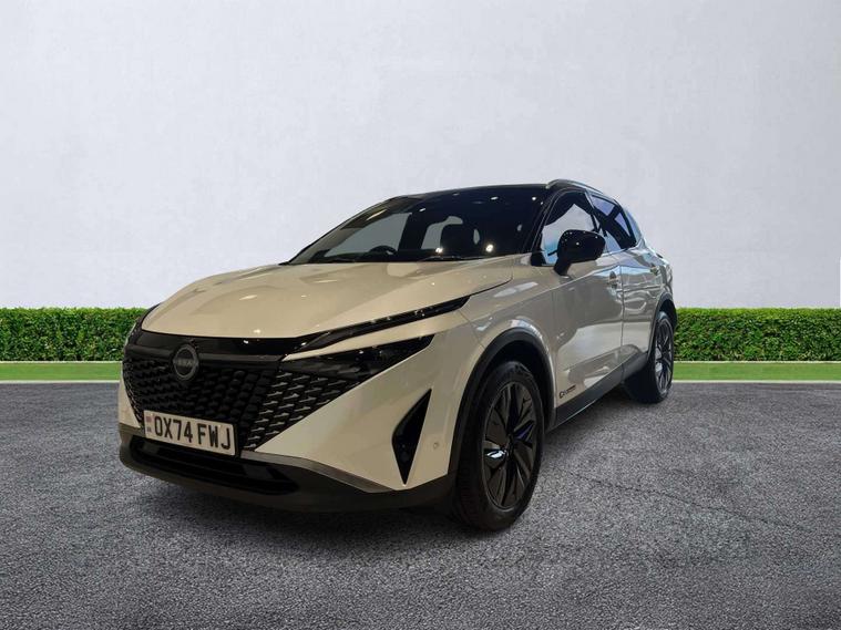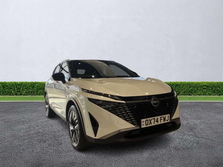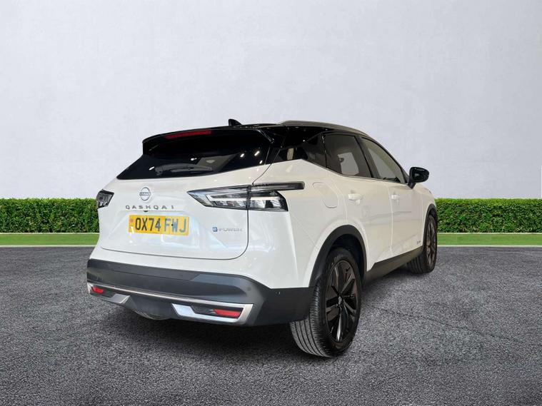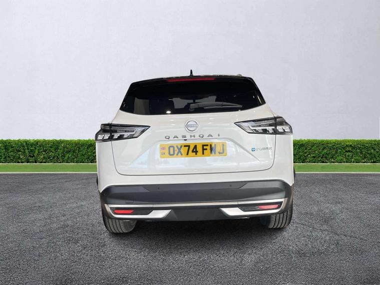 This 2025 Nissan Qashqai h e-POWER Tekna is available at Lookers Nissan Gateshead-NE10 0AZ and has a full service history, having only had one owner from new. It boasts a 1.5 litre petrol hybrid engine and meets Euro 6 emission standards. This Tekna trim level comes equipped with desirable features such as heated front seats, a heated steering wheel, and a wireless charging pad for your convenience. For enhanced safety and visibility, it includes Blind Spot Warning and LED headlights with adaptive driving beam technology. This Qashqai offers an impressive 53 miles per gallon fuel economy, indicating its efficiency compared to similar vehicles. Its low CO2 emissions also contribute to its environmentally conscious design. With a swift 0-62mph acceleration time of just 7.9 seconds, it provides a responsive driving experience. The vehicle also features a large boot space, offering ample practicality for all your needs.