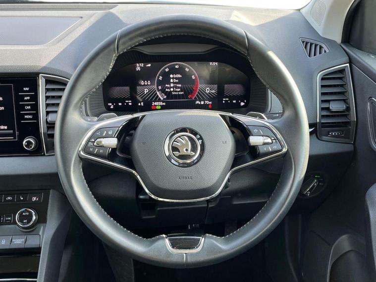 Viewing available 7 days a week at Lookers Birmingham. We have this IMPRESSIVE Skoda Karoq, finished in the striking Petrol Blue metallic paintwork and rolling on smart 18-inch alloy wheels. Supplied with 2 keys, it comes with service history from 2023 and 2025. As part of our preparation standards here at Lookers Birmingham, we’ve also service to industry leading OEM standards, ensuring it’s fully ready for its next owner to drive away with complete confidence. Its 1.5-litre turbocharged engine produces 150 ps, paired with a smooth DSG automatic gearbox, giving effortless acceleration and relaxed cruising. The ACT (Active Cylinder Technology) system boosts fuel economy by shutting down cylinders when full power isn’t needed. Inside, the SE L trim brings a premium feel with high-quality materials, supportive seats and Skoda’s famously clever interior design. You get a spacious cabin, excellent visibility and a comfortable driving position that suits both long journeys and daily commuting. Technology is well covered, with features such as satellite navigation, Apple CarPlay, Android Auto, Bluetooth, voice control, and a clear digital display. The Karoq also includes advanced safety and driver-assistance features like cruise control, lane-keeping aids, rear camera, front and rear parking sensors, making everyday driving easier and safer. Practicality is one of the Karoq’s strongest points. With a generous boot, flexible seating and Skoda’s smart storage solutions, it’s ideal for families and active lifestyles. The ride is smooth and composed, while the efficient TSI engine keeps running costs low. This car is Clean air zone compliant and does not attract any form of charge in Birmingham clean Air Zone. We understand that you rely on your car, so every car we sell is fully prepared to main dealer standard, for your peace of mind. All our vehicles pass a thorough 150 point check, are serviced and MOT’d as required by manufacturer trained technicians and are offered with up to 4 years warranty. Every car we sell is HPI clear so you can have the confidence that by choosing Lookers for your next purchase, you are choosing your perfect car. Competitive finance packages and nationwide delivery available. ESTABLISHED IN 1908, LOOKERS HAVE OVER 100 YEARS EXPERIENCE IN THE TRADE. BOOK YOUR TEST DRIVE NOW.