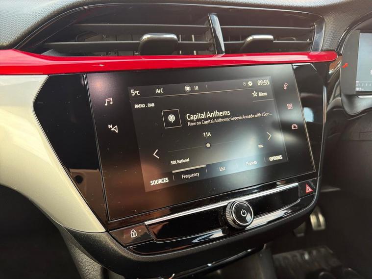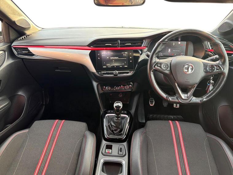 The Vauxhall Corsa 1.2 Turbo SRi Edition is a sporty, five-door hatchback that balances modern technology with dynamic styling. This Euro 6-compliant model features a 100 PS turbocharged engine paired with a 6-speed manual gearbox, delivering a 0–62 mph time of approximately 9.3 seconds. Exterior Highlights The SRi Edition is distinguished by its aggressive, "sporty" aesthetics compared to lower trims. Wheels: 17-inch 5-twinspoke diamond-cut alloy wheels finished in gloss black. Styling: Sports-style front and rear bumpers, a chrome-effect exhaust tailpipe extension, and high-gloss black B-pillars. Contrast Roof: A signature black roof and matching A-pillars come standard. Lighting: Full LED headlights with high beam assist, LED daytime running lights, and LED front fog lights. Privacy: Dark-tinted rear side and tailgate windows. Interior & Comfort Inside, the cabin features driver-focused upgrades and premium comfort features. Seats: Sports-style front seats with 6-way manual adjustment for the driver and 4-way for the passenger. Climate: Electronic climate control (ECC) for precise temperature management. Winter Pack: Heated front seats and a heated, leather-covered flat-bottom steering wheel. Aesthetics: Black headliner and alloy-effect sports pedals. Practicality: 60/40 split-folding rear seats and a 309-litre boot capacity (seats up). Technology & Infotainment Displays: A 7-inch digital instrument cluster for the driver and a central 7-inch colour touchscreen. Connectivity: Multimedia system with Apple CarPlay, Android Auto, DAB digital radio, and Bluetooth audio streaming. Driving Modes: Includes a "Sport" switch that sharpens throttle response and steering. Convenience: Rear parking distance sensors, rain-sensitive windscreen wipers, and an automatic anti-dazzle rear-view mirror. Safety & Driver Assistance This model is equipped with a comprehensive suite of active safety technologies. Assistance: Lane departure warning with lane assist, speed sign recognition, and driver drowsiness alert. Braking: Automatic emergency city braking and forward collision alert. Stability: Hill start assist, Electronic Stability Programme (ESP), and Anti-lock Braking System (ABS). Passive Safety: Six airbags (front, side-impact, and curtain) and ISOFIX child seat mountings on the outer rear seats.
