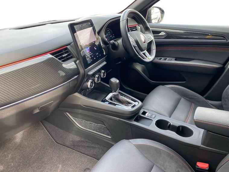 The Renault Arkana R.S. Line is where high-fashion coupe styling meets the technical precision of Renault Sport-inspired design. This 2022 model, featuring the 145 bhp self-charging hybrid powertrain, offers the perfect balance of sporty performance and exceptional fuel efficiency. With 24, 887 miles, it has been driven just the right amount to remain in peak condition while offering a significant saving over a brand-new equivalent.The R.S. Line is the most visually dynamic trim in the Arkana range. It stands out with a unique front bumper featuring a gunmetal F1-style blade, honeycomb grille, and 18-inch 'Silverstone' diamond-cut alloy wheels with distinctive red inserts. The interior is equally impressive, boasting R.S. Line black suede-leather upholstery with red stitching, a perforated leather steering wheel, and carbon-effect dashboard trim. Beyond the looks, this model is a tech powerhouse, equipped with the flagship 9.3-inch portrait touchscreen and a 10-inch digital driver display.