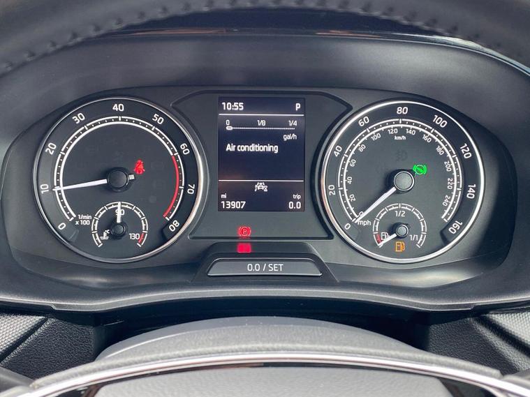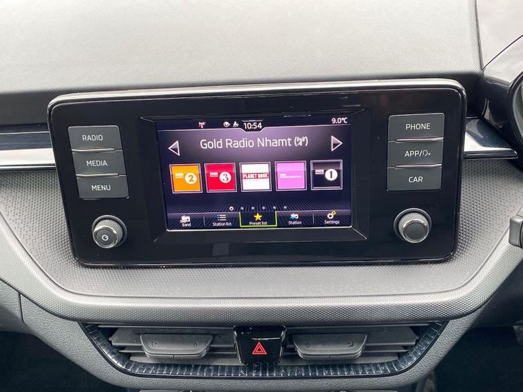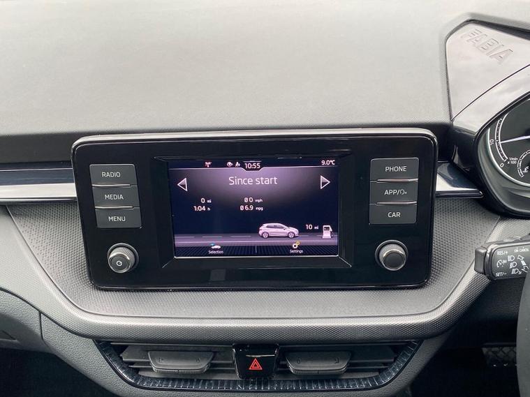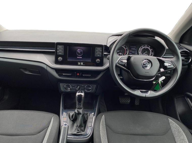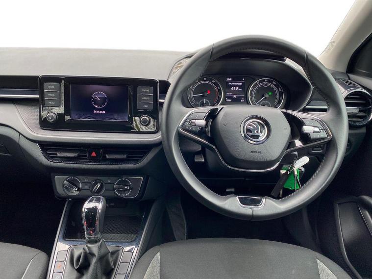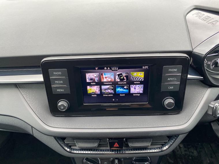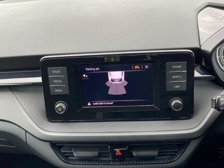 koda Fabia SE Comfort 1.0 TSI 110 PS DSG in Energy Blue with standard interior package includes cooling shutters. Standard equipment includes Swing radio with 6.5 inch touchscreen DAB radio Bluetooth SmartLink two USB C ports eCall driver alert multifunction trip computer tyre pressure monitoring 15 inch Rotare alloy wheels body coloured bumpers and mirrors electrically adjustable heated door mirrors front electric windows rear spoiler chrome Skoda lettering basic rear lights LED headlights with daytime running lights LED rear fog lights and automatic headlight range control. Inside it offers manual air conditioning height adjustable front seats height adjustable front headrests three rear headrests two spoke leather multifunction steering wheel black painted air vents glossy black trim satin black trim dimming rear view mirror leather gear knob and handbrake luggage compartment lighting central console storage fixed cupholder two front and two rear reading lights sun visor mirror and split folding rear backrest. Safety equipment includes front side and head airbags passenger airbag deactivation ESC ABS MSR ASR EDS HBA XDS hill hold control front assist lane assist pedestrian protection isofix and top tether on front passenger seat isofix with top tether on rear seats seatbelt reminders alarm with interior monitoring backup horn and towing protection remote central locking with two keys and rear wash wipe. We offer personal video appointments test drives and can arrange finance.
