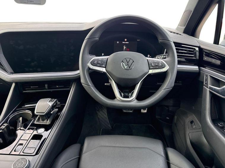 Volkswagen Touareg 3.0 TDI V6 Black Edition (286 PS) Tiptronic 4Motion Registration: LJ26 ZZD Mileage: 1, 500 miles Available From: 1st July 2026 Colour: Silicon Grey Metallic Interior: Soul Black / Crystal Grey with Soul Black trim Vehicle Description This beautifully specified Volkswagen Touareg Black Edition arrives in the sophisticated Silicon Grey Metallic, paired perfectly with a premium Soul Black / Crystal Grey interior. With just 1, 500 miles, TBC, this example offers a nearly-new flagship SUV with the desirable Black Edition aesthetics and an outstanding list of comfort, safety and technology features. The commanding exterior gains extra presence from its Black Edition styling elements, including darkened LED rear lighting, black mirror housings, decorative trims and the eye-catching 21" Leeds black alloy wheels. For added practicality, this model is equipped with a power-folding tow bar with Trailer Assist, making light work of caravans, horseboxes or trailers. Inside, the cabin ambience is elevated by the Ambient Lighting Pack, offering 30 colours to set the perfect mood day or night. Rear passengers are treated to manual sunblinds, while in the front, the Comfort Package delivers keyless access, enhanced security and easy-open electric tailgate functionality. The Driver Assistance Package Plus adds an impressive suite of advanced features: Adaptive Cruise Control, Front Cross Traffic Assist, Travel Assist, Emergency Assist, Side Scan, Traffic Jam Assist and proactive occupant protection. This ensures class-leading safety, comfort and support in all driving conditions. Road comfort is exceptional thanks to Air Suspension with Adaptive Chassis Control, giving you fully adjustable ride height and outstanding driving refinement. Connectivity is well catered for with Wireless App-Connect, multiple high-capacity USB-C ports and wireless phone charging. Key Features Exterior & Utility Silicon Grey Metallic paint Black Edition styling enhancements Power-folding tow bar with Trailer Assist 21" Leeds black alloy wheels Black roof rails Comfort & Convenience Keyless Access with full electric tailgate operation Illuminated front door sills Interior ambient lighting with 30 colour options Sunblinds for rear side windows Power-adjustable front seats with memory Auto-dimming, folding and heated door mirrors with memory Driver Assistance & Technology Air Suspension with automatic self-levelling Adaptive Chassis Control Adaptive Cruise Control Travel Assist & Emergency Assist Side Scan & Front Cross Traffic Assist Traffic Jam Assist Intelligent Park Assist with full Area View cameras Wireless App-Connect & wireless charging Multiple USB-C ports front and rear Volkswagen Approved Used Benefits (2026 Programme) When you purchase this Touareg as an Approved Used Volkswagen, you receive a comprehensive package of reassurance and protection: