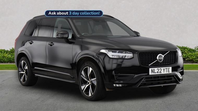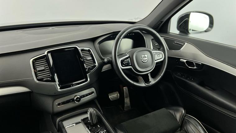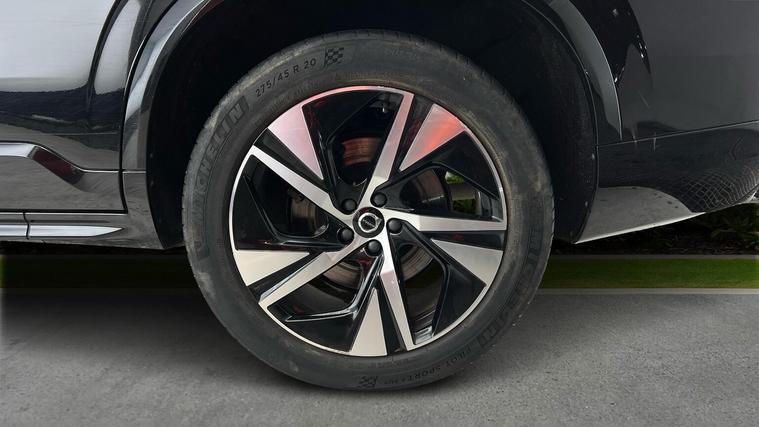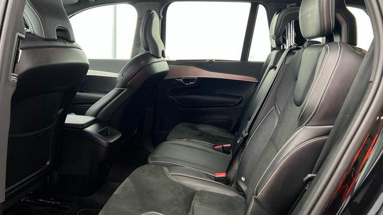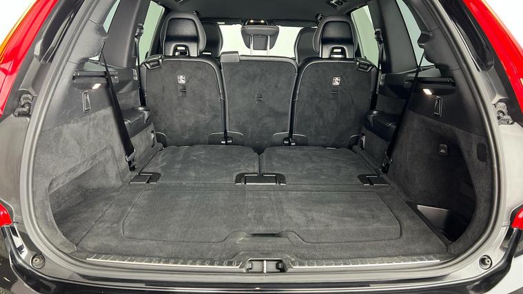 Nubuck textile/Nappa Leather/Leatherette upholstery 8-speed Automatic transmission. AWD Sport Pedals Tailored leather gear shift with contrasting seams 2-Zone Electronic Climate Control Afterrun parking climate Passenger Airbag Cut Off Switch Dual Stage Driver and Passenger Airbags Driver Knee Airbag Charcoal headlining Road Sign Information Driver Alert Control with Lane Keeping Aid R-Design grille with high-gloss black insert LED headlights Front LED Foglights 12-inch driver display Pilot Assist (up to 80mph) Adaptive Cruise Control with Distance Alert & Queue Assist Adjustable Speed Limiter My Volvo DAB (Digital Audio Broadcasting) Radio High Performance Sound Autofolding Heated Power Door Mirrors Memory for Passenger Seat Automatic door locking Door mirror covers. Black Stone Double locking Private Locking Dark Tinted Rear Windows BLIS™ and Cross Traffic Alert Anti-theft Alarm including Immobiliser. Volume Sensor and Level Sensor Keyless Drive (includes Keyless Entry and Keyless Start) "CleanZone" Air Quality System and Pollen Filter Voice Activated Control for Key Functions Digital owners manual Textile mats. third-row Metal Mesh aluminium decor Tailored dashboard and door top panels Power Driver's Seat with Memory for Seat Power Passenger Seat Heated Front Seats Power folding outer rear head restraints. second row Seven individual seats Mechanical release second seat row 4-Way Lumbar Support Exclusive textile mats. Charcoal Load Protection Net Flexible Load Floor with Grocery Bag Holder Front and 2nd Row Centre Armrest with Storage and Cupholders Illuminated Vanity Mirrors Rear Footwell and Side Step Illumination 12v Socket - Cargo Area Load cover. semi-automatic Integrated Sun Curtain - Rear Doors Autodimming Inner & Exterior Mirrors Hidden storage compartment Power Cushion Extension. Driver Chassis Braking system Indirect Tyre Pressure Monitoring System (iTPMS) Oncoming Lane Mitigation Rear Collision Warning and Mitigation Support Hill Descent Control Slippery road alert EBL. Flashing Brake Light and Hazard Warning Tailored sport steering wheel. Charcoal Adaptive power steering 20" 5 Spoke (Diamond Cut/Black) Temporary Spare Wheel Locking Wheel Nuts Washer Nozzles Colour coordinated door handles with Illumination and Puddle lights R-Design front decor elements Cargo opening metal scuff plate Illuminated Front Tread Plates Glossy Black Window Trim Roof Rails - Integrated. High Gloss Black All-wheel Drive (AWD) Tempered side windows Sensus Navigation Front and Rear Park Assist Ticket Holder Rear Park Assist Camera Plastic protection cap Contour front seats Whiplash injury protection system IC (Inflatable Curtains) - Full Length Side impact protection ISOFIX Attachment (Outer Rear Seat