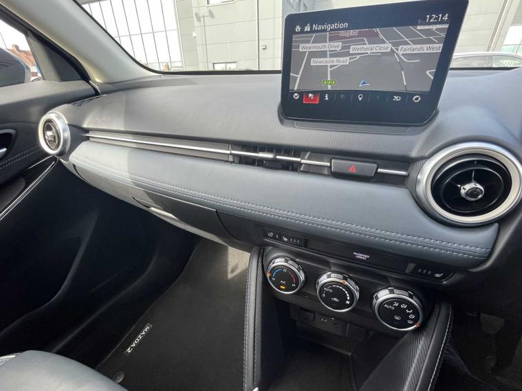 Experience premium craftsmanship, hybrid efficiency and stylish urban driving with this 2022 72-plate Mazda2 1.5 e-Skyactiv G MHEV 115 GT Sport Tech, finished in the stunning Deep Crystal Blue Mica. With one owner from new and a full service history, this beautifully presented hatchback offers outstanding reassurance and superb value. Powered by Mazda’s responsive 1.5 e-Skyactiv G mild-hybrid engine, this Mazda2 delivers lively, efficient performance paired with smooth, refined driving dynamics. The mild-hybrid system enhances both fuel economy and responsiveness, while Mazda’s signature chassis tuning ensures precise handling and excellent comfort—perfect for both city commuting and longer journeys. As a GT Sport Tech model, this Mazda2 comes exceptionally well equipped with a premium interior and advanced technology. The standout Blue and Grey Granlux Leather seats with Black Inserts give the cabin a unique and luxurious feel. Additional features include a head-up display, reversing camera, front and rear parking sensors, heated front seats, keyless entry, adaptive LED headlights, a digital driver display, and a high-quality infotainment system with navigation, Apple CarPlay and Android Auto. The interior is refined, well-crafted and thoughtfully designed, offering impressive comfort and a high-end feel that sets it apart in the compact hatchback segment. Spacious enough for everyday use yet compact and agile for city life, it strikes an ideal balance. Finished in Deep Crystal Blue Mica, this Mazda2 looks elegant and sporty from every angle, complementing its sharp exterior design. Fully inspected and prepared by our approved technicians at Lookers Nissan Sunderland, it is presented in excellent condition and ready to drive away today. If you’re searching for a stylish, efficient and premium-equipped compact hatchback with excellent history, this Mazda2 GT Sport Tech is an outstanding choice. Contact Lookers Nissan Sunderland to arrange your viewing.