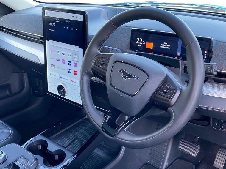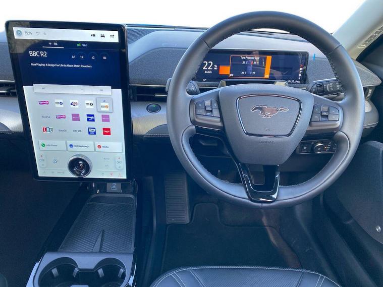 Ford Mustang Mach-E 198kW Standard Range 70kWh RWD 5dr Auto Iconic Design | 100% Electric | 16, 432 Miles The future of the Mustang is here, and it’s electric. This Mach-E blends the legendary muscle car spirit with the practical, high-tech world of the modern SUV. With just 16, 432 miles on the clock, this RWD Standard Range model is in pristine condition and ready to deliver a driving experience that is as silent as it is thrilling. Electric Performance & Efficiency The Drive: A 70kWh battery paired with a 198kW motor (approx. 269 PS) delivering instant torque and a smooth 0–62 mph in just 6.9 seconds. Impressive Range: Enjoy an official WLTP range of up to 273 miles—perfect for daily commuting and longer weekend escapes. Fast Charging: Capable of high-speed DC charging, allowing you to top up from 10% to 80% in approximately 38–40 minutes at a rapid charger. RWD Dynamics: Rear-wheel drive configuration for that classic, sporty handling feel. A Cockpit from the Future Next-Gen Infotainment: Dominated by a stunning 15.5-inch portrait touchscreen featuring SYNC 4A, Navigation, and Wireless Apple CarPlay/Android Auto. Digital Cluster: A 10.2-inch digital instrument display keeps all your vital driving data right in your line of sight. Sustainable Luxury: Black Sensico (artificial leather) heated seats and a heated steering wheel for ultimate comfort without the footprint. The "Frunk": A unique front trunk (under the hood) that is drainable and waterproof—ideal for charging cables or muddy gear. Safety & Intelligence This Mach-E is packed with Ford's most advanced driver-assist technologies: Adaptive Cruise Control with Stop & Go and Lane Centering. 360-Degree Camera and Front/Rear Parking Sensors for effortless maneuvering. E-Latch System: Keyless entry with a sleek B-pillar keypad access. Selectable Drive Modes: Choose between Whisper, Active, and Untamed to match the car's personality to your mood.