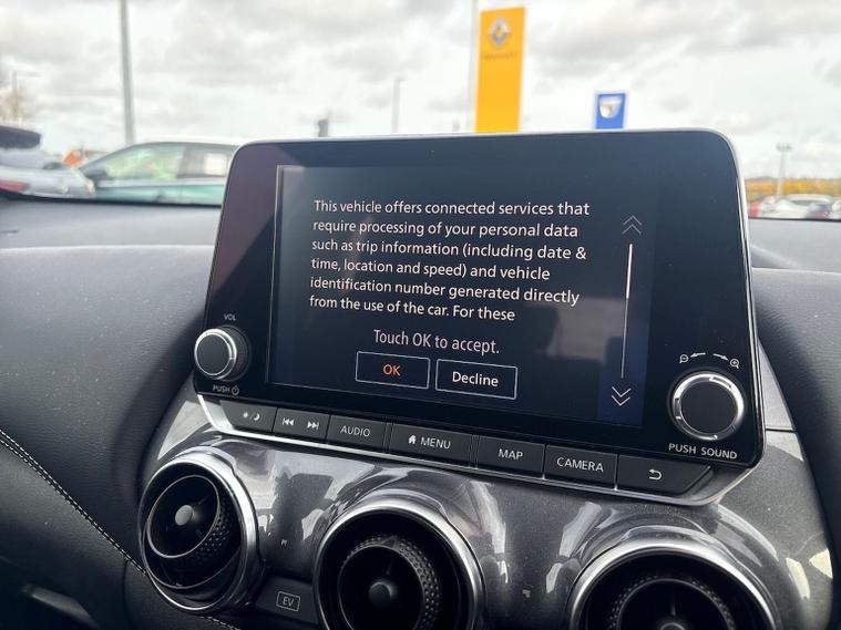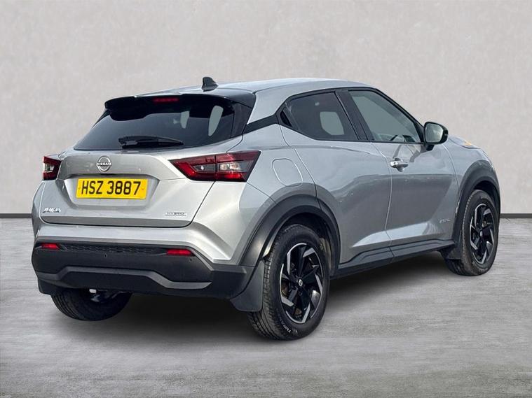 Efficient, Stylish & Well Looked-After – 2023 Nissan Juke 1.6 Hybrid N-Connecta Auto in Blade Silver If you're searching for a compact SUV that’s economical, modern and packed with everyday tech, this 2023 Nissan Juke N-Connecta Hybrid finished in sleek Blade Silver is one you won’t want to miss. With just over 9, 000 miles and one previous owner, it has been very well maintained and offers fantastic value for anyone wanting a smart, efficient crossover. Under the bonnet sits Nissan’s advanced 1.6 Hybrid engine producing 143 ps, offering a smooth, responsive and refined drive. The hybrid system cleverly blends electric and petrol power, helping you achieve excellent fuel efficiency—perfect for city driving, stop-start traffic and longer journeys alike. Paired with an automatic gearbox, it delivers quiet, confident acceleration with minimal effort. As a Euro 6 model, it’s clean and environmentally friendly too. Inside, the N-Connecta trim level brings plenty of tech and comfort, including: 8” NissanConnect touchscreen with built-in navigation Apple CarPlay & Android Auto Rear-view camera Front & rear parking sensors Digital driver display Automatic climate control Keyless entry & push-button start The cabin is smart, practical and surprisingly roomy, with supportive seats and thoughtful storage throughout. The raised driving position gives great visibility, while the boot offers plenty of space for day-to-day use. Finished in Blade Silver, this Juke carries a clean, modern look that suits the bold design perfectly. As this vehicle is sold through an Approved Nissan Intelligent Choice dealership, you’ll also enjoy complete peace of mind: ? 12-month Nissan Intelligent Choice Warranty ? RAC Roadside Assistance ? Full Nissan multi-point inspection ? Verified mileage & full history checks Stylish, efficient and packed with the tech that makes everyday driving easier—this Blade Silver Juke Hybrid N-Connecta is ready for its next adventure. Contact our team today on 02891992095 to book a test drive or request a personalised walk-around video!