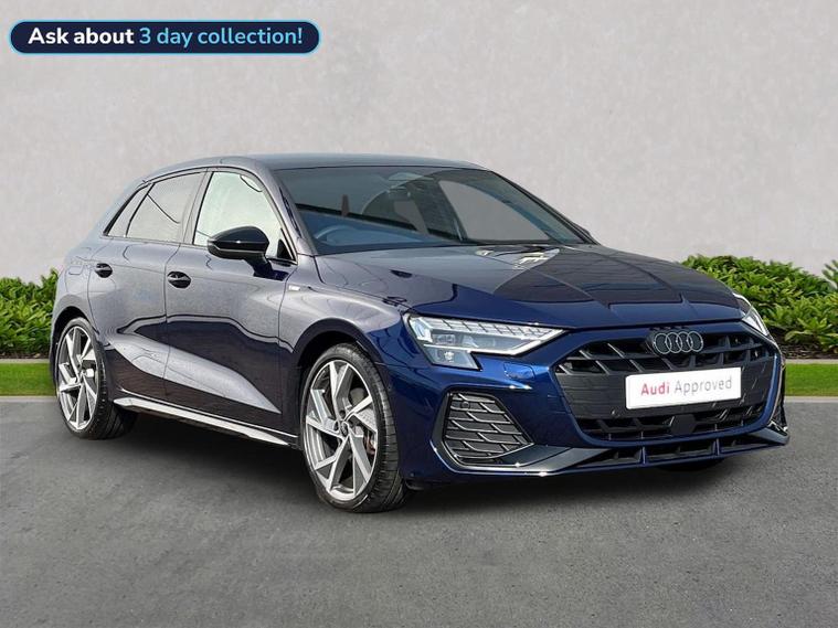 SN75XXR. Glasgow Audi are offering a rare opportunity to own this AUDI A3 Sportback Black Edition TFSI 150 PS S tronic. This vehicle was registered by us for use by one of our colleagues & has been maintained by us in accordance with the manufacturers recommendations. The vehicle is now being readied for sale & as such represents a strong saving against the price of purchasing this as a brand new vehicle. In preparation for sale this vehicle has had all of it's software updates carried out and has passed our internal pre sale checks. - In accordance with the manufacturers requirement, this vehicle is sanctioned for handover from this month. ===================================================================== The A3 blends sporty driving with refined design. The A3 offers punchy engines, advanced tech, and a premium cabin. A strong entry into the Audi brand, ideal for first-time luxury buyers.Standard features on this car include Integrated SATELLITE NAVIGATION with real-time routing and traffic updates. SATELLITE NAVIGATION via APPLE CAR PLAY which allows integration using apps like Maps to help manage your journeys. FULL LEATHER delivering a luxury feel in the cabin. CLIMATE CONTROL which automatically regulates cabin temperature for you. VIRTUAL COCKPIT so that you can customise the digital dashboard with maps, gauges, and media. CRUISE CONTROL to maintain a steady speed without constant pedal input. FRONT AND REAR PARKING SENSORS to help manoeuvring in tight spaces whether you are going forward or reversing. REAR CAMERA for easier and safer reversing. HEATED FRONT SEATS to keep your comfortable in cold weather conditions. Plus lots more. ===================================================================== 150 MULTI POINT CHECK | AUDI PARTS |FACTORY TRAINED TECHNICIANS 12 MONTH MANUFACTURER BACKED WARRANTY & ROADSIDE ASSISTANCE. AUDI CONNECTED|HISTORY CHECKS ===================================================================== Lookers are an authorised representative for a wide range of award-winning car manufacturers, providing you with an unparalleled choice of quality and approved used cars, currently for sale. Our exceptional standards ensure you receive the best possible service when you purchase with us, ensuring peace of mind when you drive away with your new vehicle. With us representing so many great brands we are an excellent position to offer you a fair and transparent price for your part exchange. At Lookers, we care about our customers and want to ensure that the price you see is the price you pay. Our Transparent pricing policy simply means, honest, straightforward pricing offering our vehicles at the best price possible; ensuring no haggling or hassle for you.
