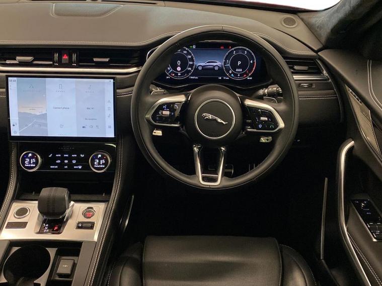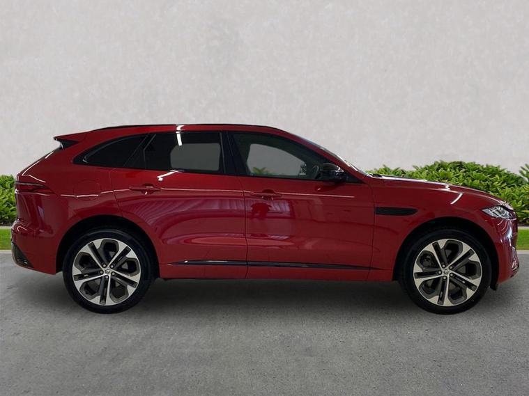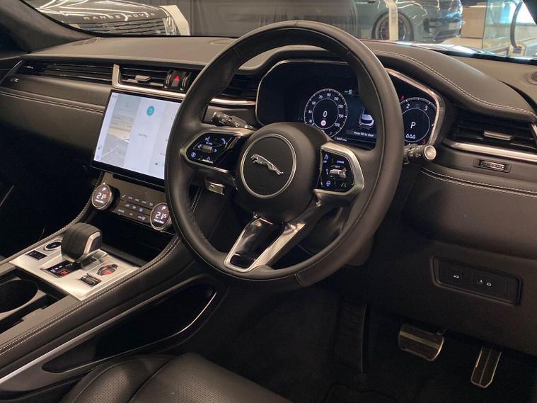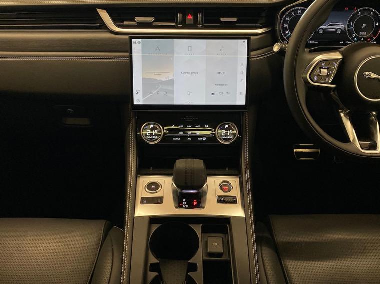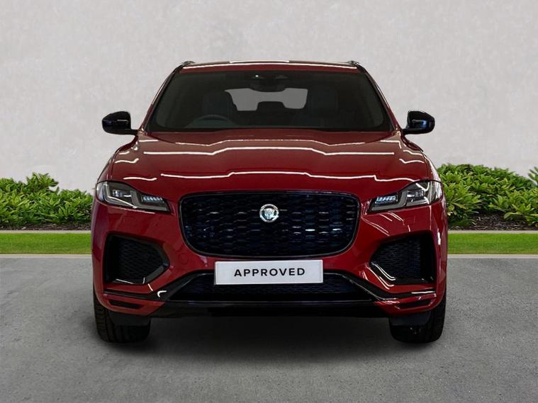his 2024 Jaguar F PACE D300 R Dynamic HSE Black 90th Anniversary Edition is a truly special find, having had only one owner from new and boasting exceptionally low mileage of just 9340 miles. This striking four wheel drive SUV is powered by a robust 3.0 litre diesel engine, meeting Euro 6 emission standards. Inside, you'll appreciate the convenience of wireless device charging, including wireless phone charging, and the comfort of 2 zone climate control. For added safety and ease of use, this F PACE is equipped with blind spot assist and front and rear parking aid. Seamlessly integrate your digital life with Apple CarPlay. Experience impressive performance with an acceleration of 0-60mph in just 6.1 seconds, a figure that sets this vehicle apart from many others in its class. The generous boot space offers ample room for all your needs, making it a practical choice for any journey. Furthermore, this Jaguar benefits from a low insurance group, indicating that running costs could be more affordable compared to similar vehicles. With a substantial towing weight of 2400 kg, this F PACE is also well equipped for carrying loads or towing a caravan or trailer.