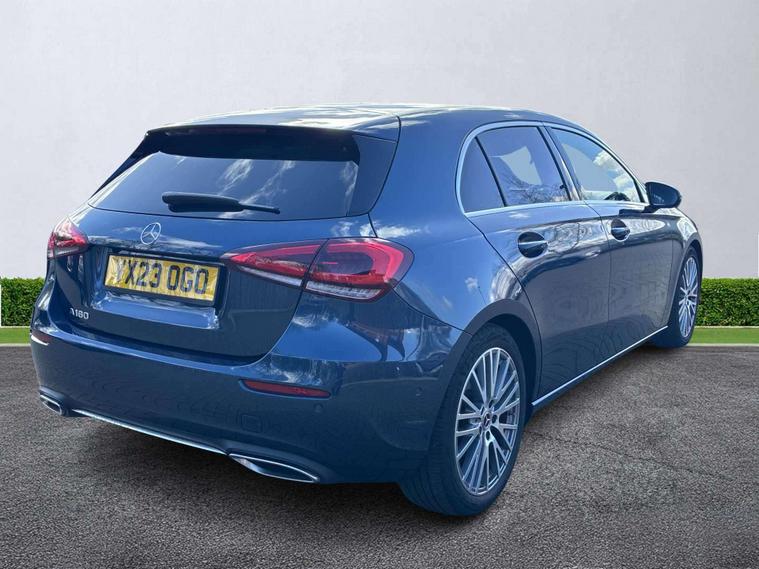 Lookers Worcester are delighted to offer this Mercedes-Benz A180 Sport Executive, finished in Denim Blue Metallic with a Black interior. This well-maintained Lookers Approved vehicle offers exceptional value. With a full-service history and some main dealer service history but has main dealer preparation, ensuring top-notch quality and reliability. Equipped with Premium Navigation, Night package, Reversing camera, Active Lane Keeping Assist, Mercedes-Benz emergency call system, 10-inch digital instrument display, Electrically folding exterior mirrors, LED High Performance headlamps, 64-colour ambient lighting, 18-inch AMG 5-twin-spoke light-alloy wheels, Seat comfort package, Cruise Control and much more. This Mercedes-Benz delivers not only on performance but also on efficiency, promising great economy and low running costs. Its striking design is matched by practical features Step inside to experience luxury first hand rear ISOFIX for child safety, front height adjuster, and heated seats for comfort during chilly drives. Before being presented for sale this vehicle has undergone a Lookers Approved multi-point inspection which includes a service and MOT if required – all carried out by Mercedes Benz trained technicians. For added peace of mind this vehicle comes with a 12-month RAC Warranty which can also be extended up to 4 years. If you would like to find out more about this vehicle, why not ask us for a personalised video or book now to arrange a viewing or test drive. We’d be delighted to hear from you.