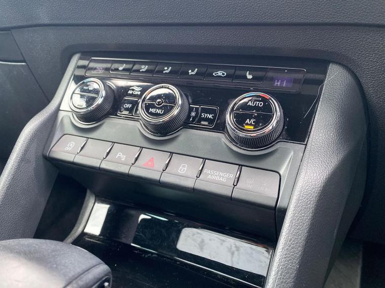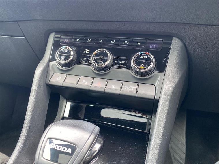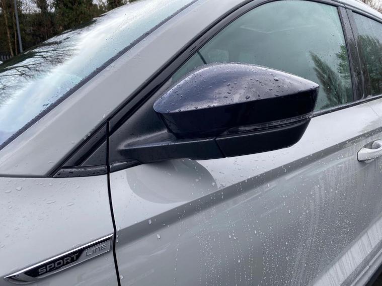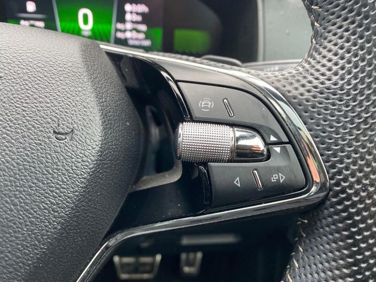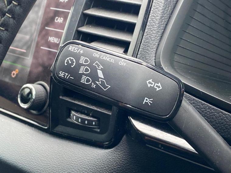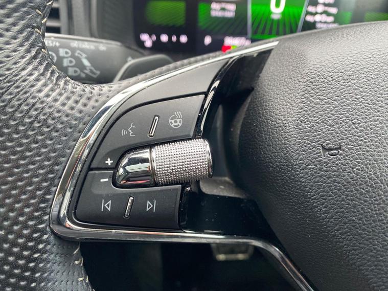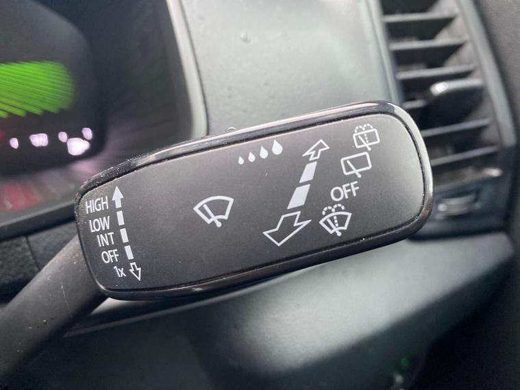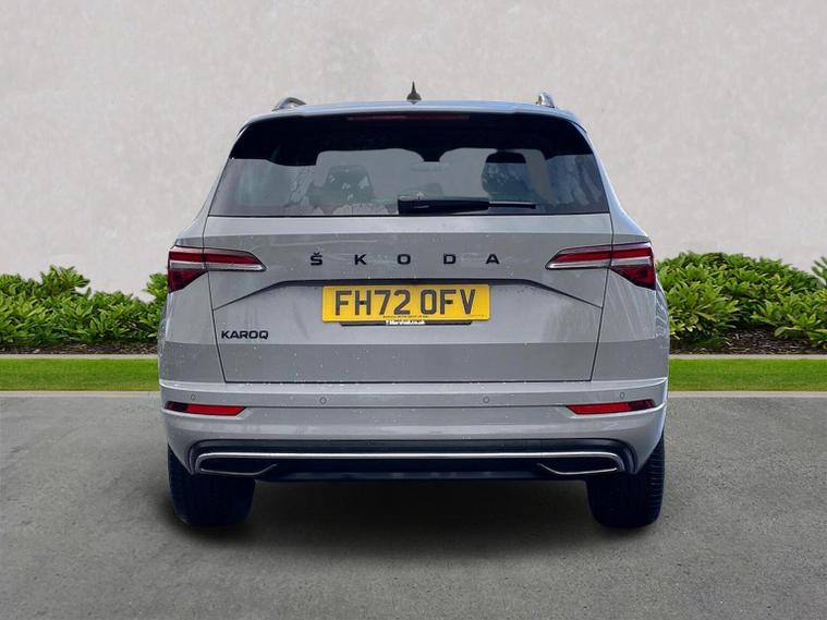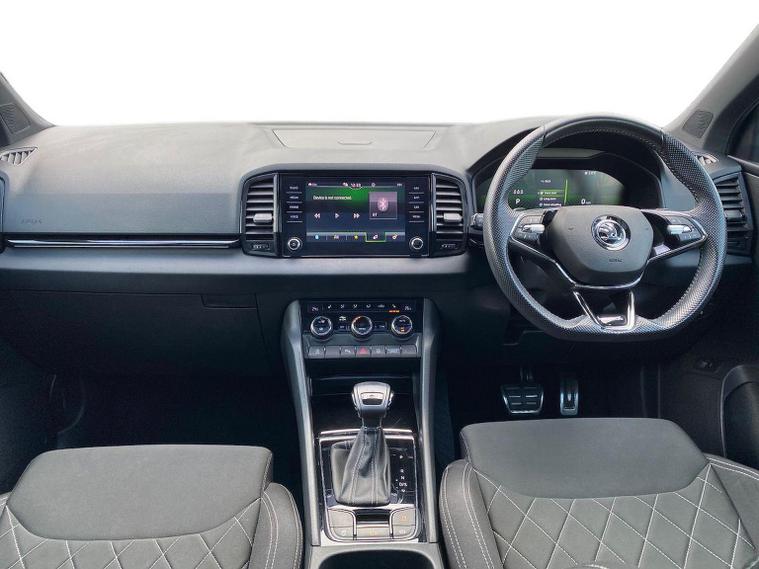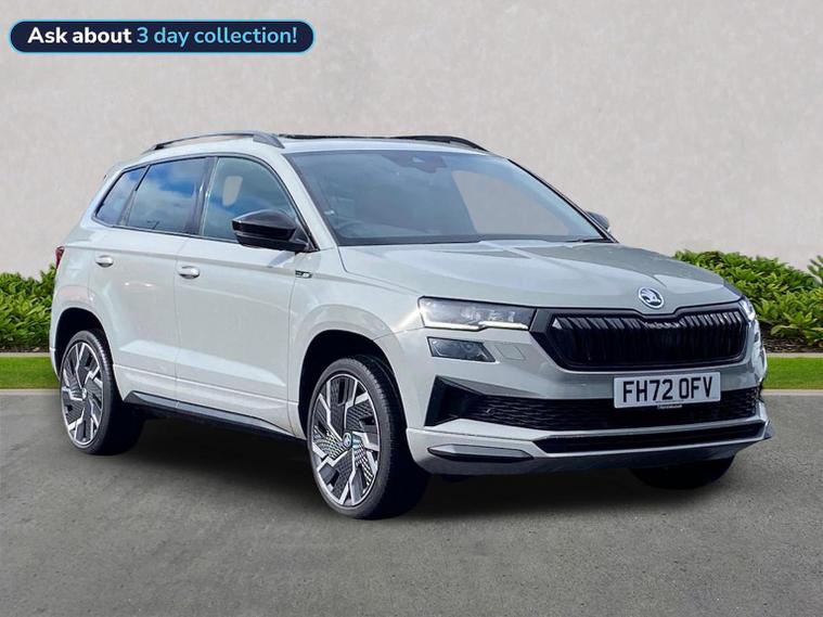 Skoda Karoq SportLine 1.5 TSI 150 PS DSG in Meteor Grey with black upholstery includes Bolero 8 inch touchscreen DAB radio Bluetooth SmartLink USB ports wireless Apple CarPlay CareConnect and emergency call. Driver assistance features include cruise control with speed limiter drive mode selection driver fatigue sensor front and rear parking sensors tyre pressure monitoring and voice control. Exterior equipment includes 17 inch Stratos alloy wheels chrome grille chrome window surrounds body coloured trim electrically adjustable heated folding mirrors with auto dimming on driver side illuminated boarding spots front and rear electric windows silver roof rails heated rear window LED headlights with daytime running lights front fog lights rear LED lights and a tyre repair kit. Inside it offers dual zone climate control height adjustable front seats manual lumbar support virtual cockpit two spoke leather multifunction steering wheel illuminated glovebox front centre armrest rear armrest split folding rear seats illuminated footwells overhead glasses holder reading lights textile floor mats sun visor with illuminated mirror and an umbrella in the drivers door. Safety equipment includes seven airbags including drivers knee airbag passenger airbag deactivation ESC ABS XDS plus hill start assist front assist with predictive pedestrian protection ISOFIX on outer rear seats child locks alarm with interior monitoring tilt sensor SAFE locking remote central locking with two keys and seatbelt reminders. We offer personal video appointments test drives and can arrange finance.