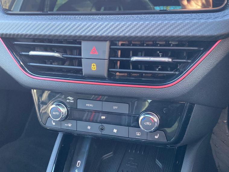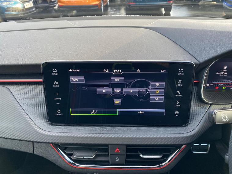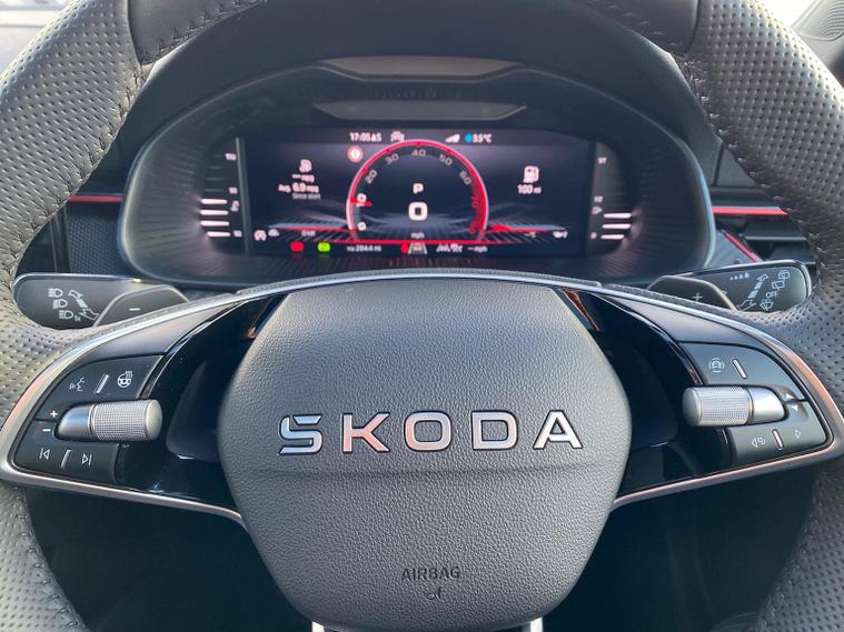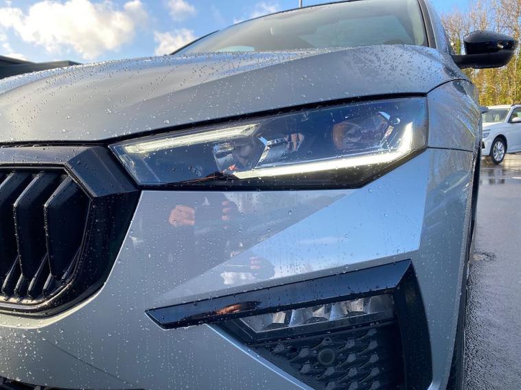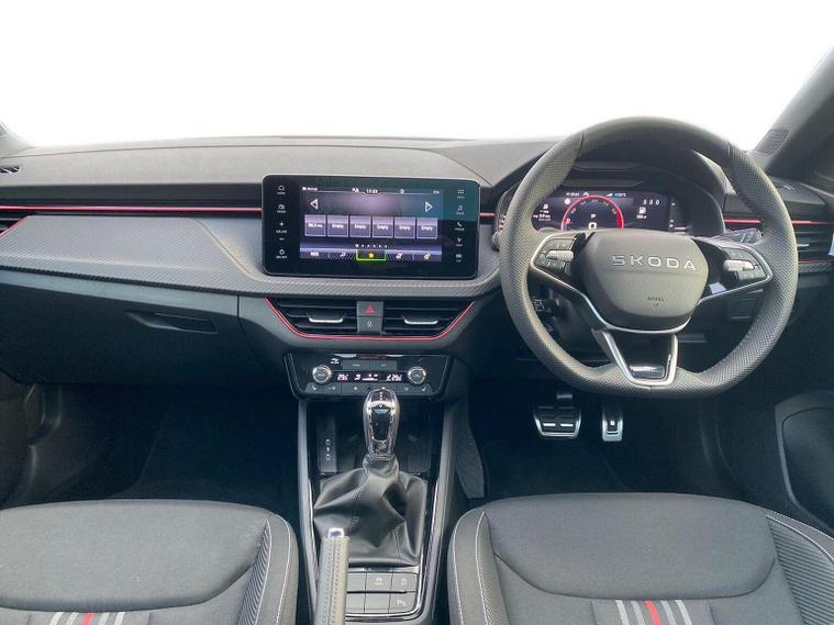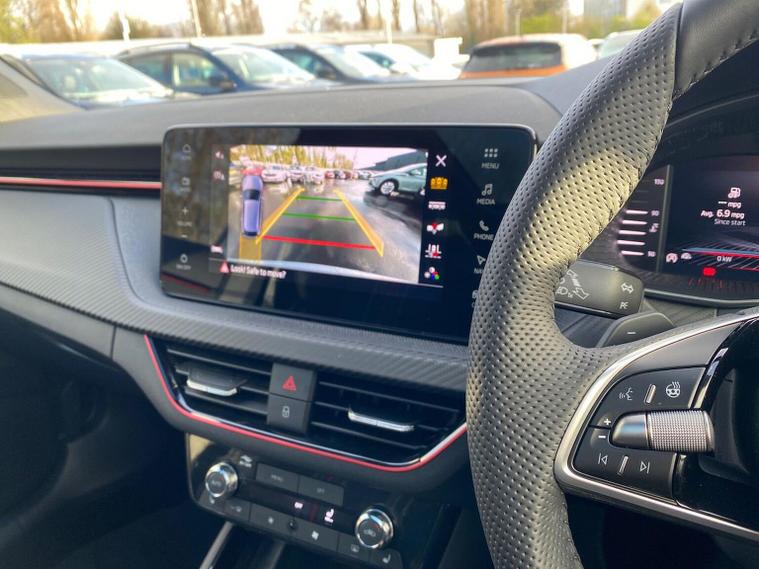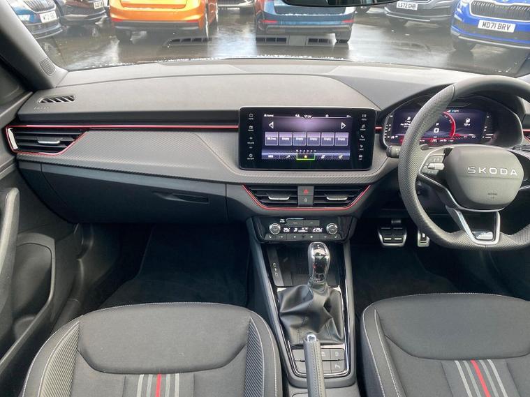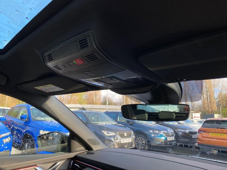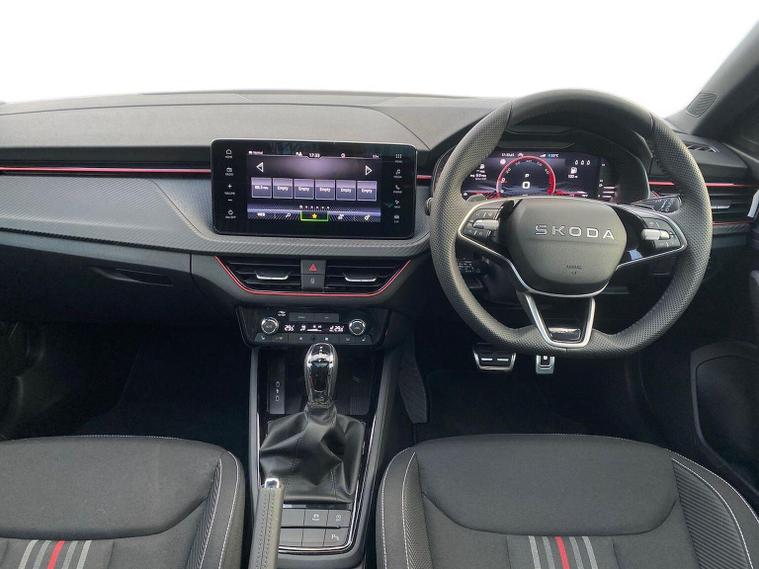 Skoda Scala Monte Carlo Edition 1.5 TSI 150 PS DSG in Smokey Silver Metallic with Monte Carlo interior includes 18 inch Ursa black diamond cut alloy wheels panoramic glass roof black exterior styling extended tailgate glass Monte Carlo plaque privacy glass and black diffuser. Standard equipment includes 9.2 inch Skoda navigation wireless SmartLink DAB radio Bluetooth Care Connect four USB C ports eight speakers emergency call proactive services adaptive cruise control driver alert rear parking sensors rear view camera tyre pressure monitoring traffic sign recognition and voice control. Exterior features include heated rear window black mirrors black grille body coloured bumpers front and rear electric windows and a tyre repair kit. Inside it offers a heated three spoke leather sports multifunction steering wheel with DSG paddles aluminium pedals white red ambient lighting black roof headlining virtual cockpit dual zone climate control front centre armrest illuminated glovebox textile floor mats height adjustable front seats manual lumbar support cargo elements net package net under shelf storage pockets rear centre armrest roof lights sun visors with mirrors ice scraper umbrella in drivers door and the Winter Pack. Safety equipment includes front side and curtain airbags passenger airbag deactivation drive mode select with sport chassis control and ECO mode front assist lane assist hill hold control isofix on front passenger seat and rear seats top tether alarm with SAFE locking disc brakes and seatbelt reminders. We offer personal video appointments test drives and can arrange finance.