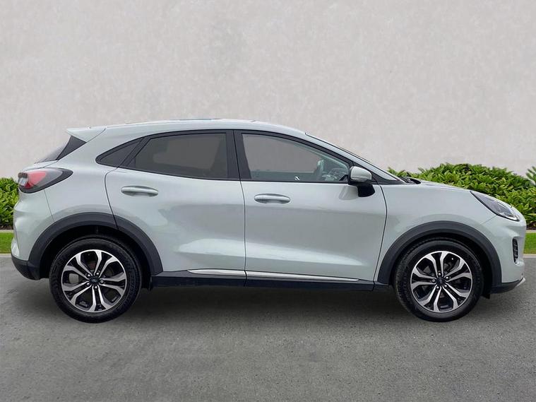 Ford Puma 1.0 EcoBoost Hybrid mHEV Titanium Experience the perfect blend of award-winning style, clever practicality, and electrified efficiency. This Ford Puma Titanium is the ultimate compact SUV, offering a punchy hybrid drive with the reassurance of a manufacturer warranty. Vehicle Overview Mileage: 19, 409 Miles Warranty: Balance of Ford Manufacturer Warranty remaining. Engine: 1.0L EcoBoost Mild Hybrid (mHEV) – self-charging tech that boosts fuel economy and lowers emissions without ever needing to plug in. Transmission: 6-Speed Manual (Smooth and engaging). Titanium Trim Highlights The Titanium model focuses on premium comfort and sophisticated "clean" styling, making it a favorite for those who prefer a refined ride over stiff sports suspension. The Famous MegaBox: An extra 80 litres of waterproof storage beneath the boot floor—perfect for muddy boots or tall items. Tech-Focused Interior: Features Ford’s SYNC infotainment with Sat Nav, Apple CarPlay, and Android Auto. Winter Ready: Includes the Quickclear Heated Windscreen—say goodbye to ice scraping on frosty mornings. Driver Assistance: Rear parking sensors, Lane Keeping Aid, and Cruise Control come as standard. Styling: 17” Absolute Black machined alloy wheels and projector headlamps with signature LED daytime running lights. Why Choose This Puma? The Ford Puma is consistently the UK’s best-selling car for a reason. It handles with the agility of a small hatchback but offers the elevated driving position and luggage space of a much larger vehicle. With under 20, 000 miles and the backing of a Ford warranty, this is a "ready-to-go" car that looks and drives like new. "Practicality meets personality. From the clever boot space to the fuel-sipping hybrid engine, it’s the complete package."