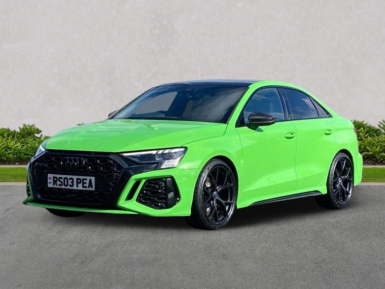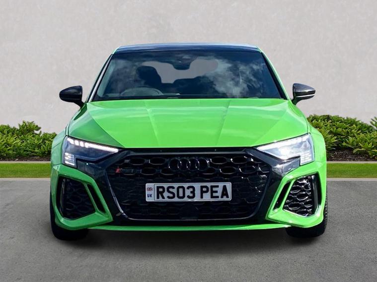 Reference: RS03PEA (PLATE STAYING ON CAR) Farnborough Audi are offering a rare opportunity to own this AUDI RS3 2.5TFSi CARBON BLACK SALOON S-TRONIC QUATTRO 400PS [C&S]. This 1 owner vehicle has full service history, was supplied by our group and has been maintained by us too. Since being returned to us it has been fully checked over by our fully trained, experienced and skilled technicians and is ready to go. ===================================================================== The RS3 offers thrilling performance in a compact package, thanks to its iconic engine delivering sharp acceleration and a unique exhaust note. It features quattro all-wheel drive, aggressive styling, and advanced tech. Ideal for city driving with serious track potential, it blends everyday usability with hot-hatch excitement. This car is supplied with the following optional upgrades :- COMFORT & SOUND PACK which combines premium audio, comfort features, and parking assistance. CARBON STYLING PACK for a performance-inspired look. . Standard features on this car include Integrated SATELLITE NAVIGATION with real-time routing and traffic updates. SATELLITE NAVIGATION via APPLE CAR PLAY which allows integration using apps like Maps to help manage your journeys. FULL LEATHER delivering a luxury feel in the cabin. CLIMATE CONTROL which automatically regulates cabin temperature for you. VIRTUAL COCKPIT so that you can customise the digital dashboard with maps, gauges, and media. CRUISE CONTROL to maintain a steady speed without constant pedal input. REAR PARKING SENSORS to warn of objects behind while reversing. REAR CAMERA for easier and safer reversing. HEATED FRONT SEATS to keep your comfortable in cold weather conditions. Plus lots more. ===================================================================== 150 MULTI POINT CHECK | AUDI PARTS |FACTORY TRAINED TECHNICIANS 12 MONTH MANUFACTURER BACKED WARRANTY & ROADSIDE ASSISTANCE. AUDI CONNECTED|HISTORY CHECKS ===================================================================== Lookers are an authorised representative for a wide range of award-winning car manufacturers, providing you with an unparalleled choice of quality and approved used cars, currently for sale. Our exceptional standards ensure you receive the best possible service when you purchase with us, ensuring peace of mind when you drive away with your new vehicle. With us representing so many great brands we are an excellent position to offer you a fair and transparent price for your part exchange. At Lookers, we care about our customers and want to ensure that the price you see is the price you pay. Our Transparent pricing policy simply means, honest, straightforward pricing offering our vehicles at the best price possible; ensuring no haggling or hassle for you.