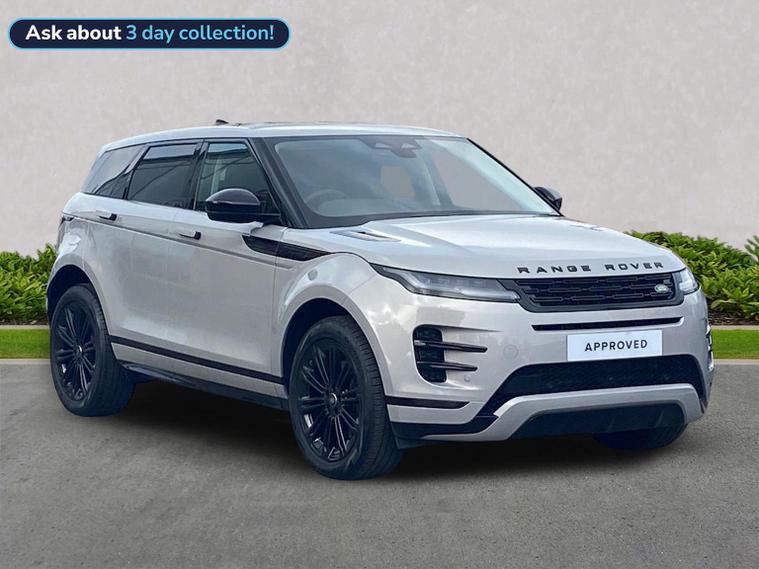 This 2024 Land Rover Range Rover Evoque D200 Dynamic HSE presents an exceptional ownership proposition, boasting a full service history and Land Rover manufacturer approval, ensuring peace of mind. With only one owner from new and an incredibly low mileage of just 10, 722 miles, this Four Wheel Drive model is in superb condition. It features a refined 2.0L Diesel Engine compliant with Euro 6 emissions standards. Inside, you'll find a luxurious Dynamic HSE trim, complete with a Meridian Sound System for an immersive audio experience, Keyless Entry for convenience, and Two Zone Climate Control to maintain perfect cabin temperature. The advanced Pixel LED Headlights with Signature DRL provide excellent visibility, while Adaptive Cruise Control enhances the driving experience on longer journeys. For added comfort and aesthetics, the car also impresses with a Fixed Panoramic Sunroof, Privacy Glass, 20" Gloss Black Alloys and a Black Exterior Pack. Experience impressive performance with an acceleration of 0-60mph in just 7.9 seconds, all while achieving an excellent fuel economy of 43 mpg. This Evoque also offers a generous boot space, making it practical for all your needs. Furthermore, its low CO2 emissions highlight its efficiency and environmental consideration compared to other vehicles in its class. This Land Rover Range Rover Evoque is a well maintained and highly specified example, offering a blend of style, capability, and advanced technology.
