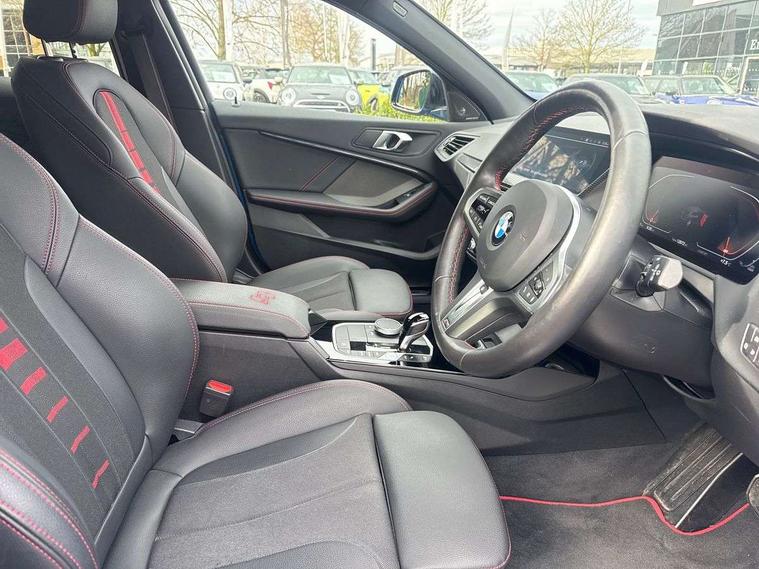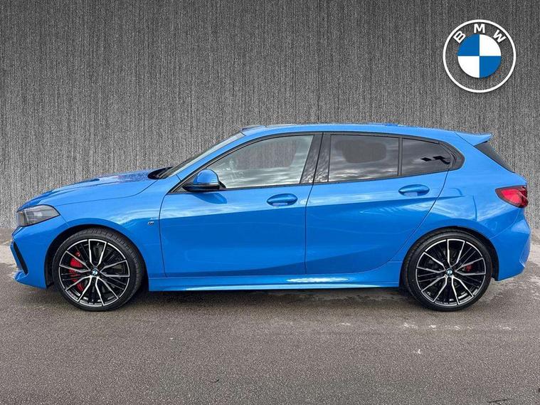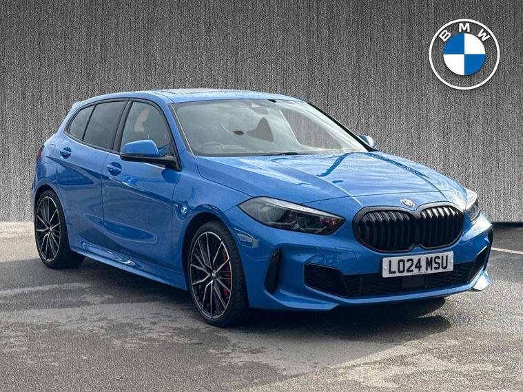 Welcome to BMW Crewe. Misano blue BMW 128ti with a cloth/sensatec interior. Additional options on this car include sun protection glass, a panoramic glass sunroof, comfort pack, 128ti pro pack and a technology pack. If you are viewing from a distance let us bring the car to you via video link where one of our BMW experts will demonstrate the car to you on your smart device, allowing you to view the vehicle in the comfort of your own home. Thank you for viewing our advert, we look forward to assisting you further.