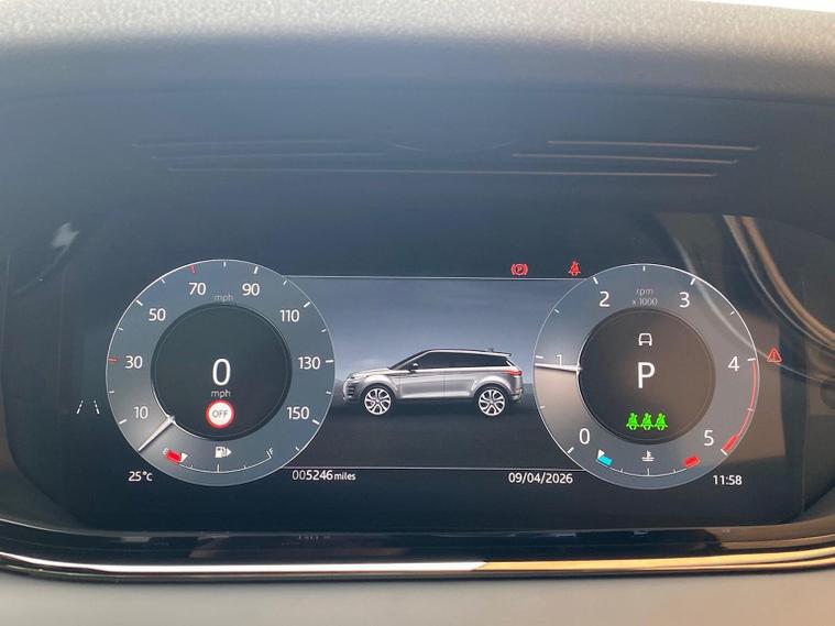 This 2025 Land Rover Range Rover Evoque D200 Edition boasts a single owner and a full service history, ensuring excellent provenance. As a Land Rover manufacturer approved vehicle, it offers peace of mind. This four wheel drive model features a 2.0L diesel engine and meets Euro 6 emission standards. Inside, you'll find comfortable 12 way driver memory and 10 way passenger electric front seats, Heated Steering Wheel, alongside a fixed panoramic roof for an airy cabin feel. Connectivity is enhanced with Android Auto and Apple CarPlay. Experience impressive performance with this Evoque, accelerating from 0 to 60mph in just 7.9 seconds. Its fuel economy is a notable highlight, achieving up to 45 miles per gallon, and it also benefits from low CO2 emissions, setting it apart from many other vehicles in its class. Keyless entry adds to the convenience of this well maintained and desirable Range Rover Evoque.